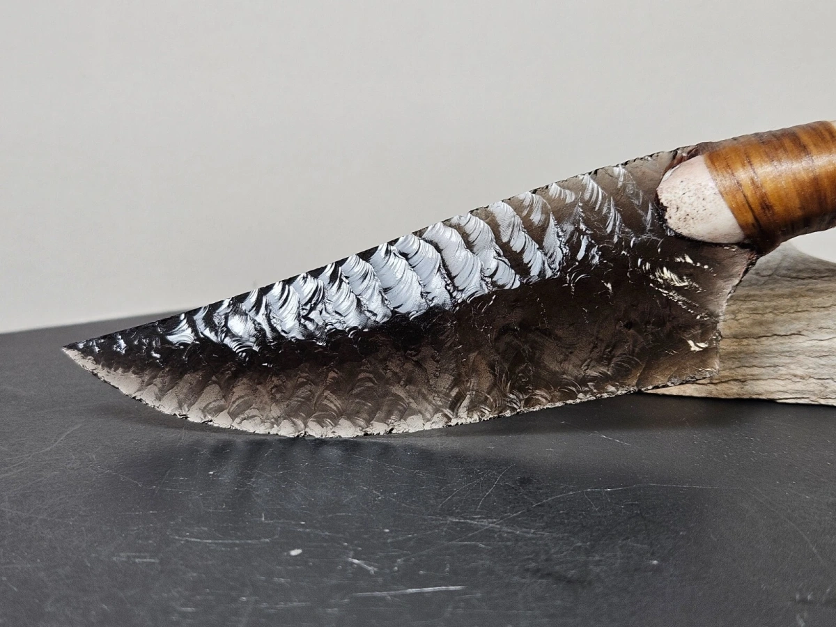 Obsidianmesser von Kenny Hull | Handgefertigtes Unikat aus Hirschhorn und Rauchobsidian