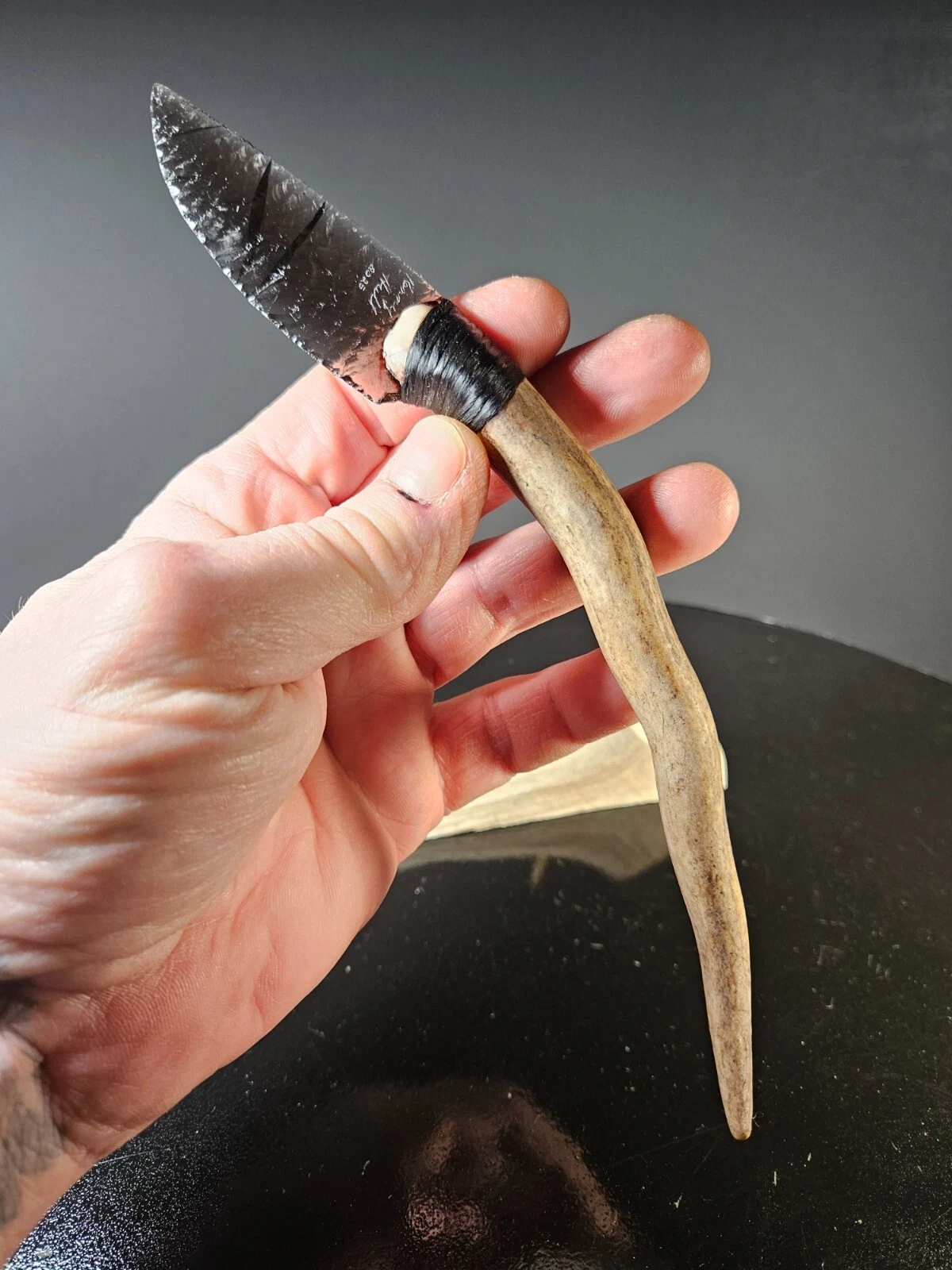 Obsidianmesser von Kenny Hull | Handgefertigtes Unikat aus Hirschhorn und Smokey Glass Buttes Obsidian