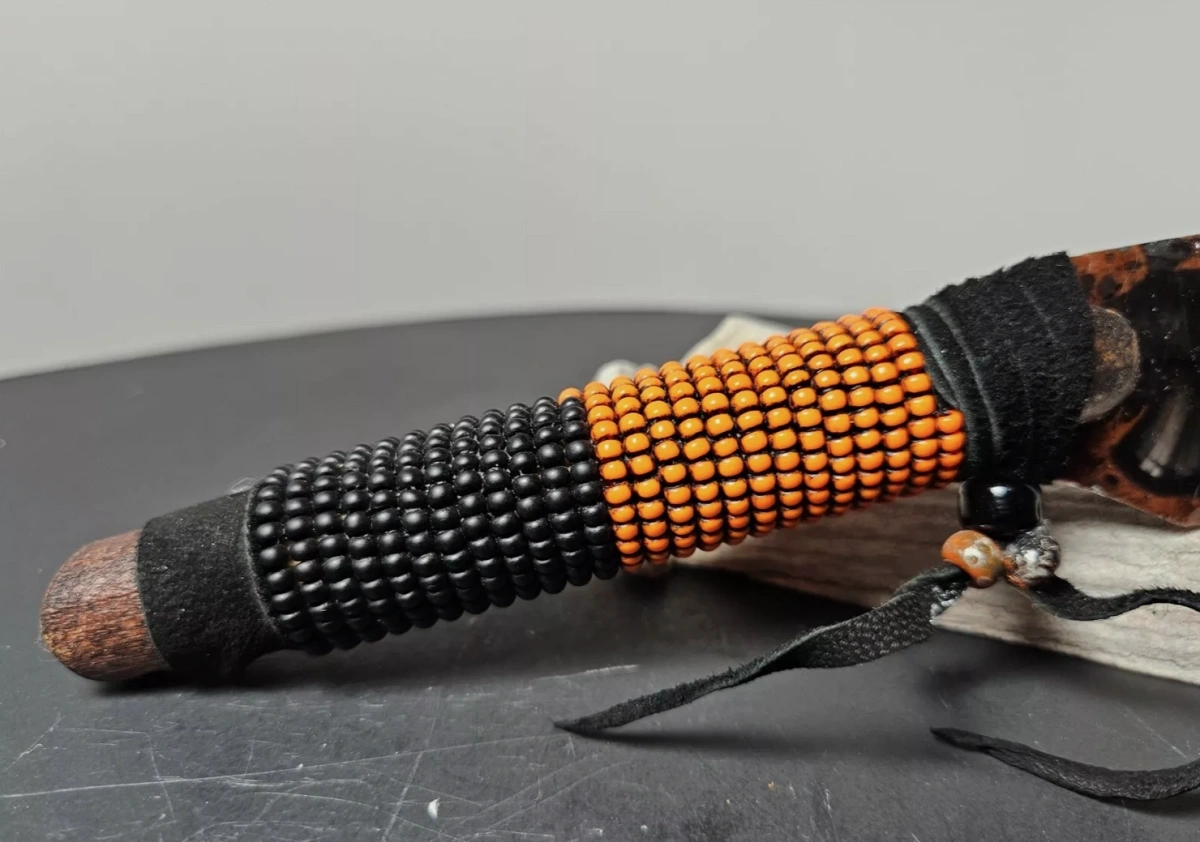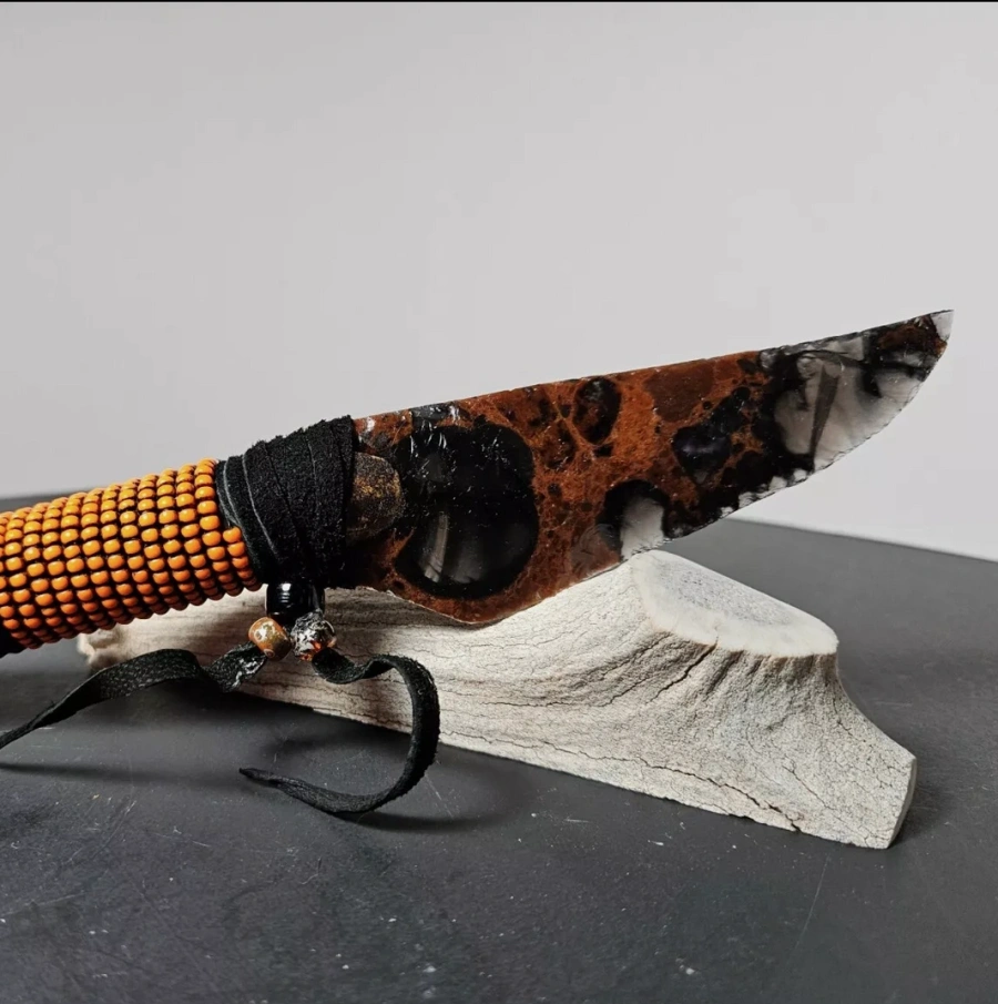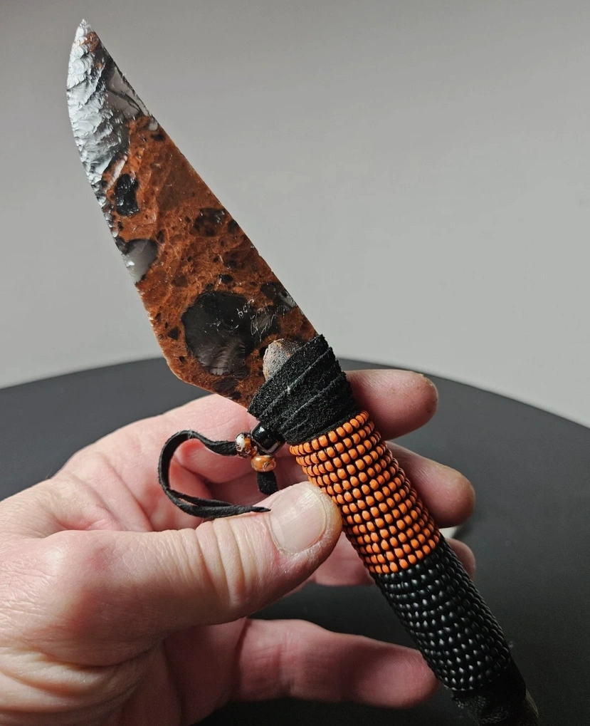 Handgefertigtes Obsidianmesser mit Perlenbesticktem Griff von Kenny Hull. Unikat 2025.