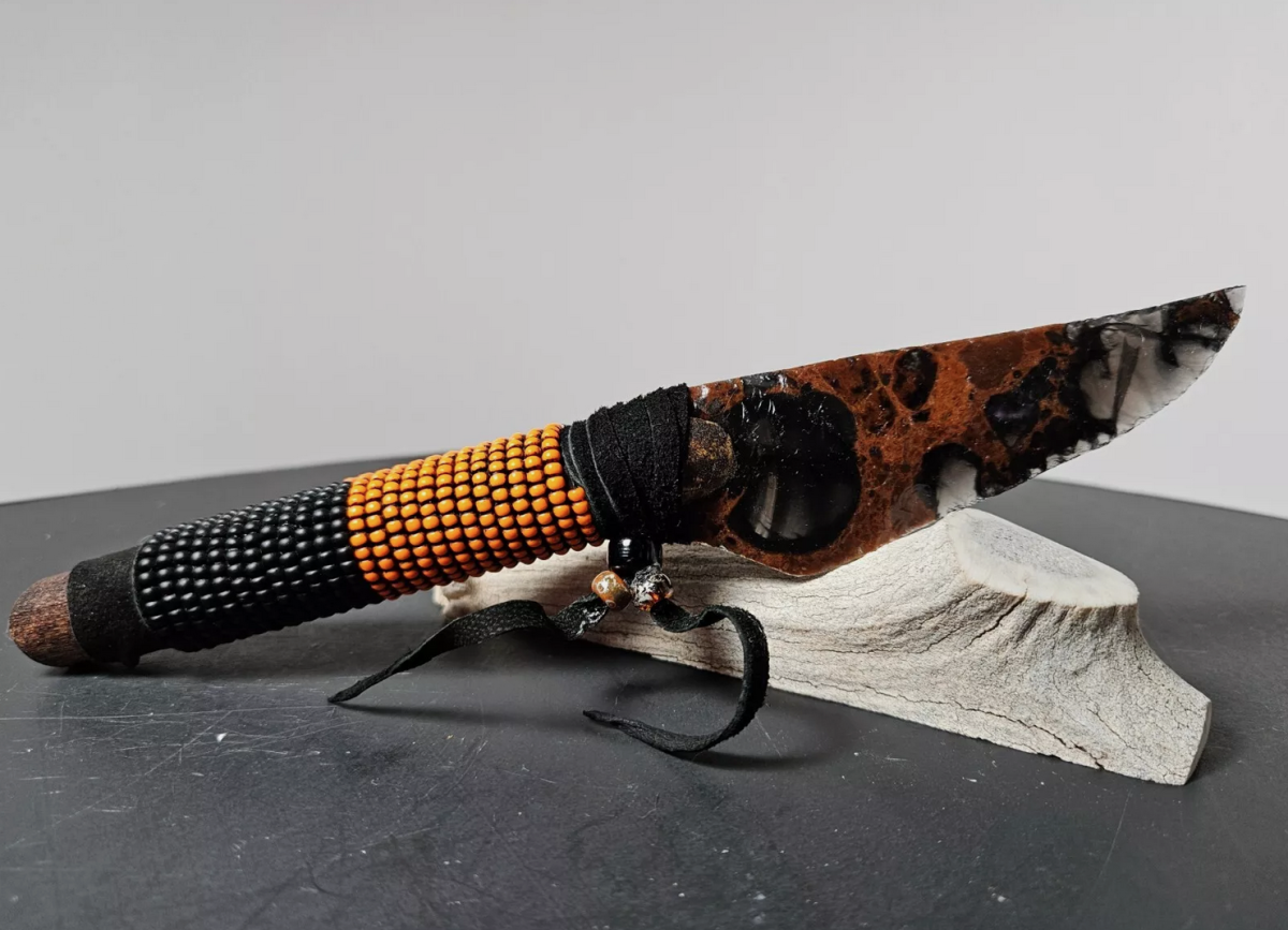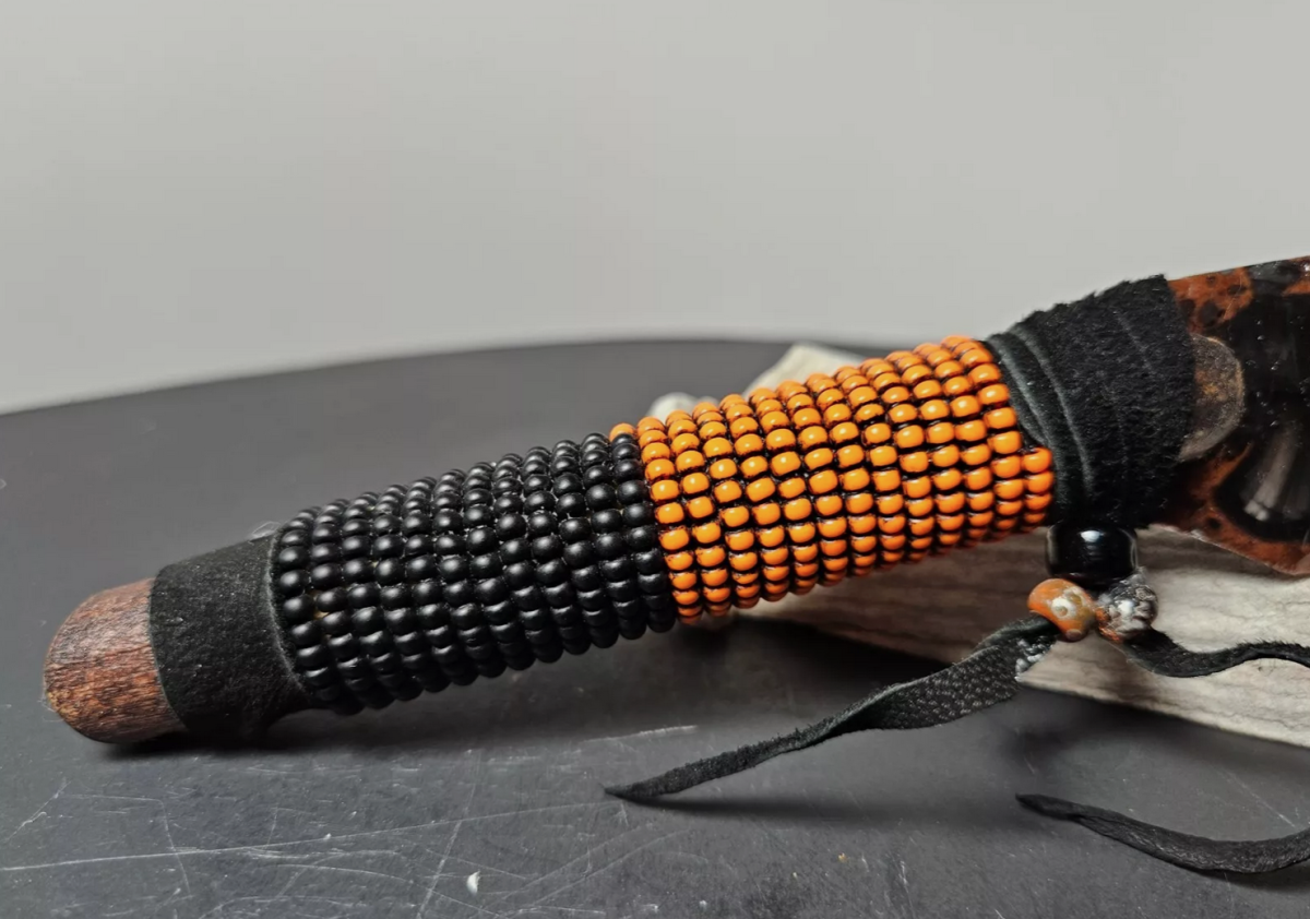 Rot Schwarz Obsidianmesser mit Perlen | Handgefertigtes Unikat