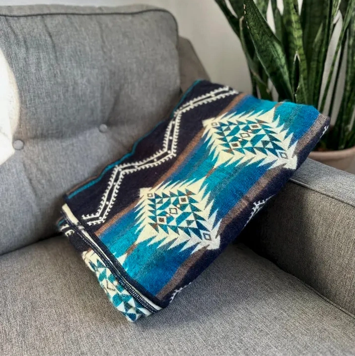Handgefertigte Alpakadecke – fair, nachhaltig und mit lebendigen, wendbaren Mustern.