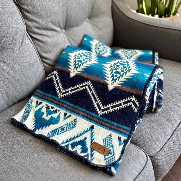 Alpaka Wolldecke | Cobalt Blue | Handgefertigt in Ecuador | 229 x 198 cm