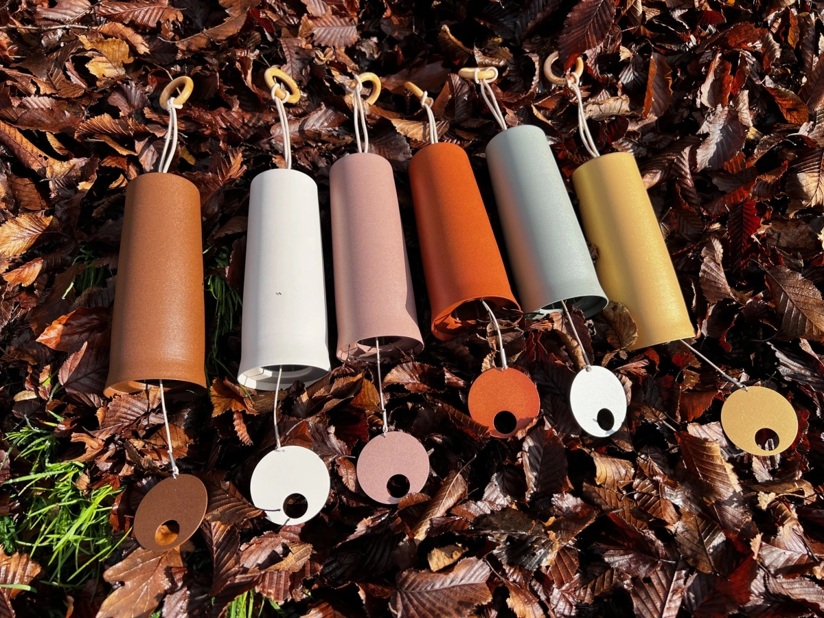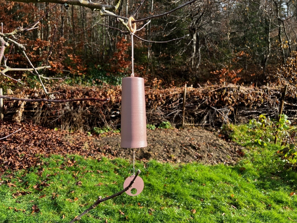 Draussen aufgehängt entfalten sie eine besondere Wirkung. Ein sanfter Windstoss genügt und die Luft beginnt zu schwingen. Die Klänge verweben sich mit den Geräuschen der Natur, mit Blattwerk, Vogelrufen und dem fernen Murmeln von Wasser. Es ist, als würde die Umgebung selbst ein wenig weiter atmen.