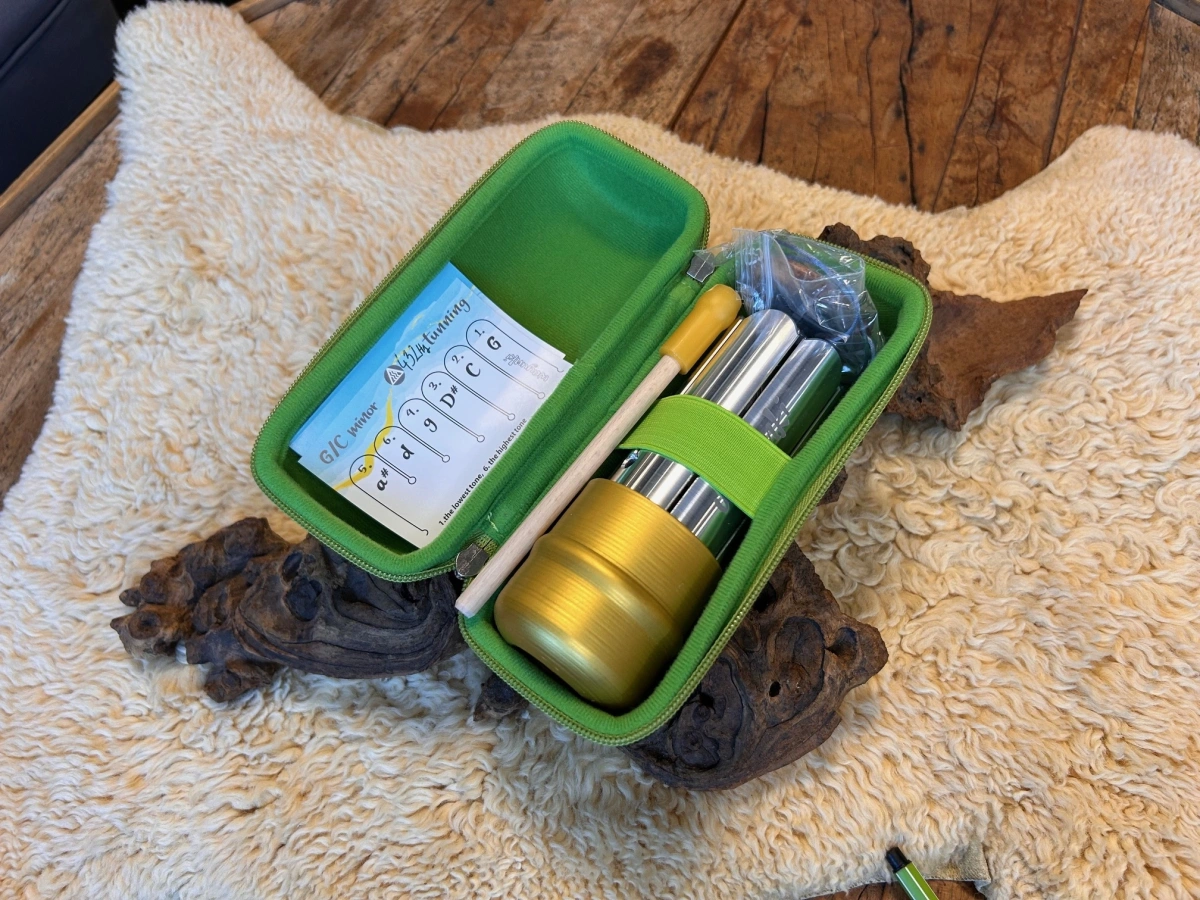 Erhältlich in den Stimmungen G/C Major, Fis Minor und C/G Minor, trägt jede Variante ihre eigene Energie und Qualität in sich, die sich mit den Elementen Feuer, Wasser, Erde und Luft verbinden lässt. In der indischen Lehre der Ragas wird der Einfluss von Tonfolgen auf das emotionale und energetische Erleben vertieft beschrieben.