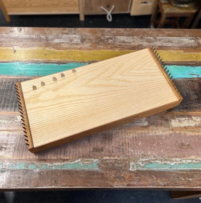 Das 34-saitige Monolina Monochord baut auf dem Monolini auf, ist jedoch deutlich vielseitiger und in den Grundstimmungen D, F, G, A und C erhältlich. Mit fünf Reitern lässt sich ein melodischer Koto-Bereich einfügen, der den perlenden, meditativen Klangteppich um harmonische Dur- oder Moll-Melodien erweitert und das Gehirn einlädt, eigene innere Melodien weiterzuführen. Die gewölbte Unterseite schmiegt sich sanft an Rücken, Füsse, Brust oder Bauch und überträgt die satten, obertonreichen Klänge direkt in den Körper, wirkt beruhigend und tief entspannend. Das Instrument eignet sich besonders für Klangtherapie, Yoga, Meditation sowie für die Arbeit mit Kindern und älteren Menschen. Gefertigt aus Kirsche und Esche, biologisch geölt, stimmstabil und robust, misst die Monolina 72 × 33 × 11 cm, wiegt 2,7 kg und wird inklusive Reitern, Dur- und Moll-Schablone, Sticks, Stimmgerät, Stimmschlüssel, Ersatzsaiten und Leinenhülle geliefert.