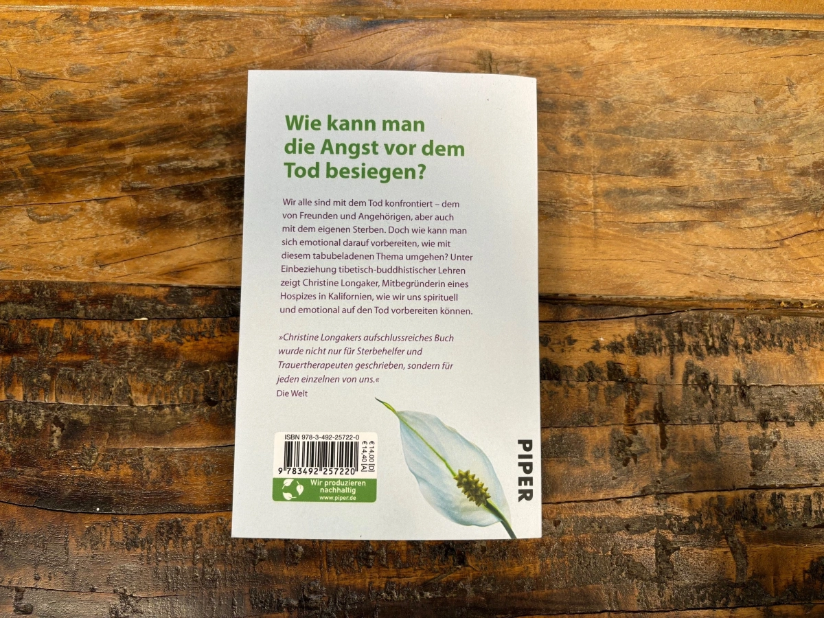 Wir alle sind mit dem Tod konfrontiert dem von Freunden und Angehörigen, aber auch mit dem eigenen Sterben. Doch wie kann man sich emotional darauf vorbereiten, wie mit diesem tabubeladenen Thema umgehen? Unter Einbeziehung tibetisch-buddhistischer Lehren zeigt Christine Longaker, Mitbegründerin eines Hospizes in Kalifornien, wie wir uns spirituell und emotional auf den Tod vorbereiten können.