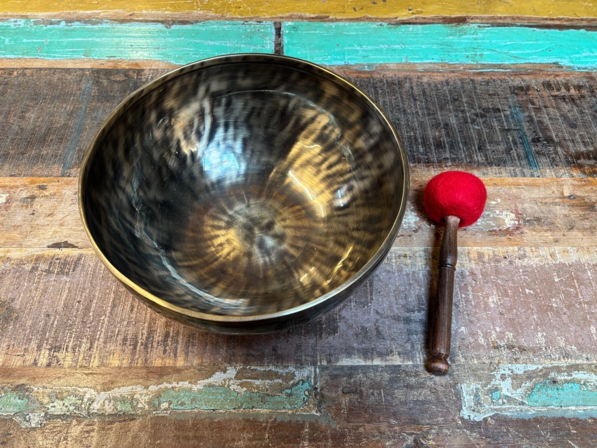 Ihr Klang breitet sich sanft im Raum aus, lädt Dich ein loszulassen und Dich in eine wohltuende Tiefe fallen zu lassen. Ob für Deine Klangheilung oder Dein nächstes Klangbad – diese Schale begleitet Dich mit Wärme, Präsenz und einer feinen, nährenden Energie.
