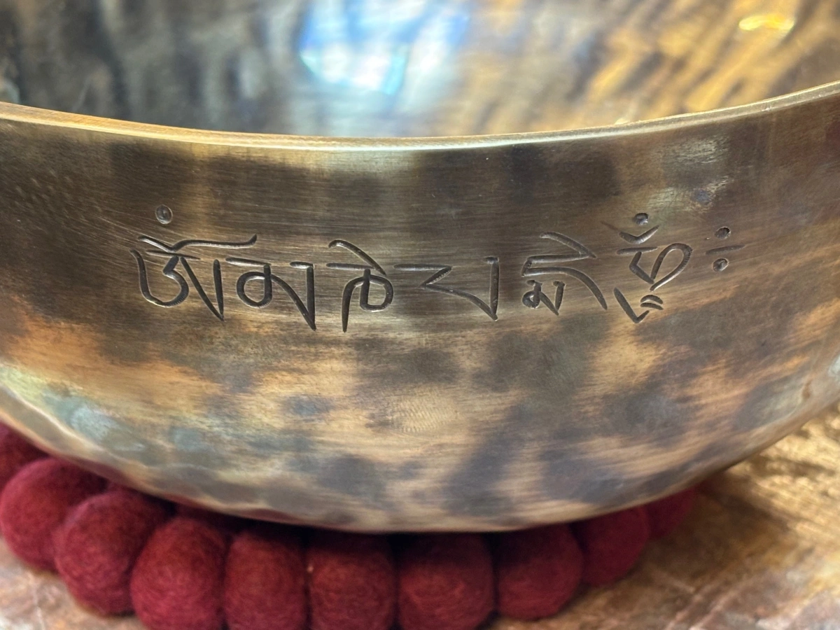 Mit einem Durchmesser von ca. 27 cm und einem Gewicht von 2131 g entfaltet sie einen warmen, tragenden Ton im E, der dem Solarplexus zugeordnet wird. Dieser Klang stärkt Dein inneres Zentrum, fördert Selbstvertrauen und unterstützt Dich dabei, in Deine eigene Kraft zu kommen.