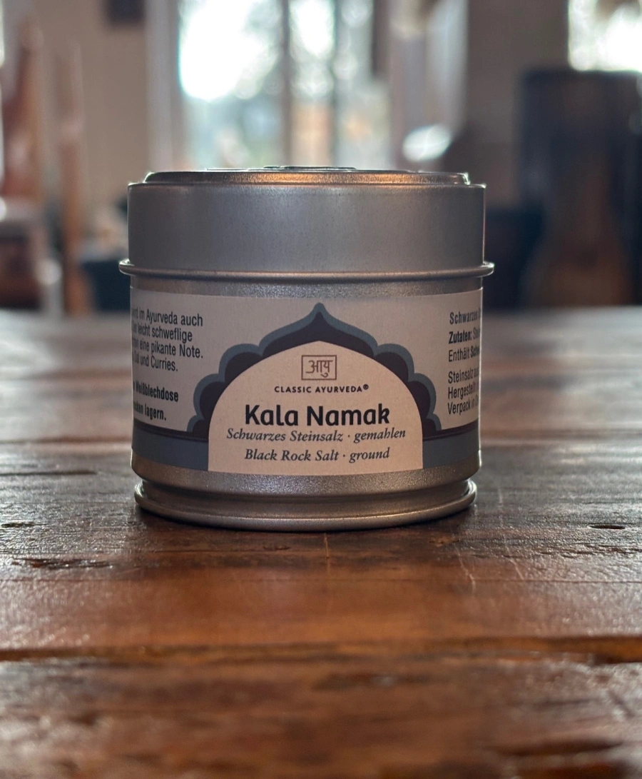 In der ayurvedischen Küche gilt Kala Namak seit Jahrhunderten als kostbare Zutat. Es verleiht Speisen wie Dal, Curries, Chutneys oder Tofu jene besondere, pikante Note, die man sofort wiedererkennt. Doch sein Wert reicht weit über den Geschmack hinaus: In der ayurvedischen Lehre wird es als kühlend beschrieben und gilt als Tridosha-Balancierer – es soll Vata, Pitta und Kapha in Einklang bringen und so das innere Gleichgewicht fördern.