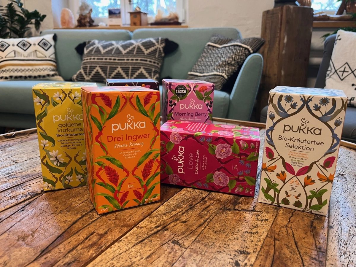 Pukka Tee ist eine Marke, die sich auf die Herstellung von hochwertigen Tees spezialisiert hat, die sowohl für ihren Geschmack als auch für ihre gesundheitlichen Vorteile bekannt sind. Die Tees werden aus biologisch angebauten Kräutern und Pflanzen hergestellt und kombinieren traditionelle Heilpflanzen mit modernen, kreativen Rezepturen. Pukka legt besonderen Wert auf Nachhaltigkeit und ethische Beschaffung, und die Produkte sind oft auch Fair-Trade-zertifiziert.