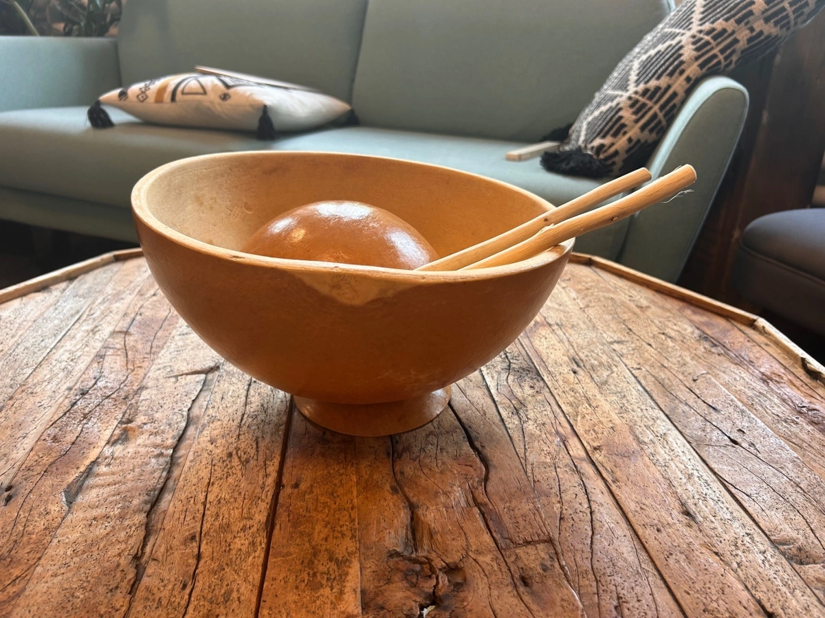 Die Trommel eröffnet vielseitige Klangmöglichkeiten: Auf der kleineren Kürbishälfte gespielt, klingt sie weich und sanft, fast wie unter Wasser. Die große Schale kannst Du mit der Öffnung nach unten auf eine weiche Unterlage legen und mit Faust- oder Knöchelschlägen tiefe, bassige Töne erzeugen. Durch das Verändern des Wasserspiegels lassen sich die Töne zusätzlich modulieren – ein einzigartiger Effekt, der das Instrument zum Water Drum macht. Sie kann auch sehr gut als Kalebassentrommel genutzt und rein mit den Händen gespielt werden.