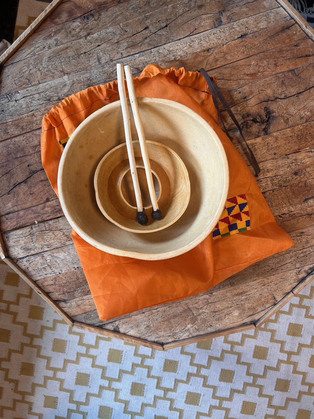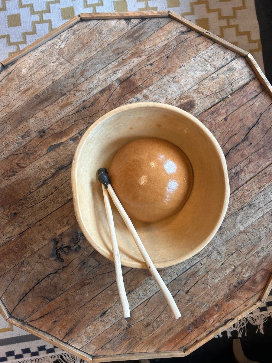 Dieses Water Drum (Jibara) verbindet uralte Tradition, natürliche Materialien und moderne Spieltechniken – ideal für Rhythmusliebhaber, Klangforscher und experimentierfreudige Musikerinnen und Musiker.