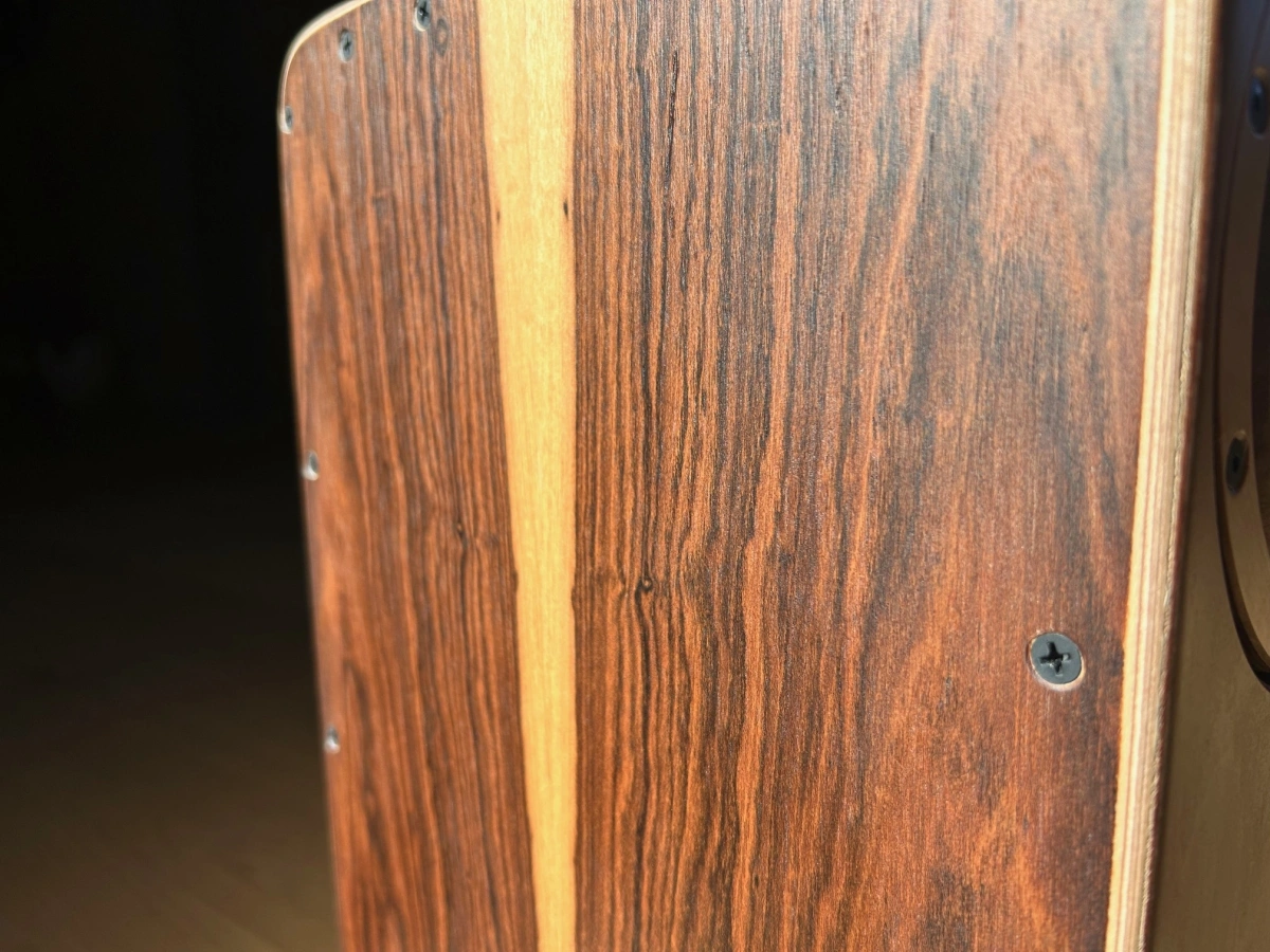 Das Duo Louro Cajon verbindet edle Materialien mit innovativen Details. Die Frontplatte aus Louro Preto (Black Laurel) Holz sorgt für klare Ansprache, ergonomisch abgerundete Kanten bieten hohen Spielkomfort. Ein doppelt geführtes Viersaiten System mit manueller Stimmung liefert präzise Kontrolle, unterstützt von der integrierten String Sensitivity Technologie.