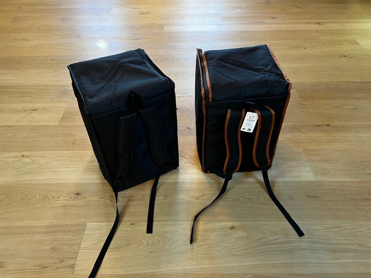 Schutzhülle mit gepolsterten Gurten und Fronttasche für Zubehör.