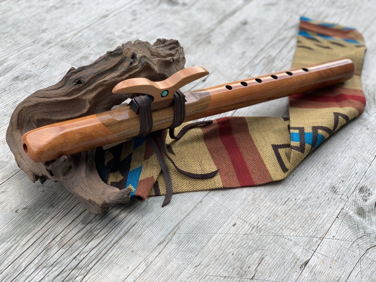 Indianische "High Spirit" Flöte aus Madrone- und Walnussholz in A-Moll. Sie harmoniert natürlich sehr schön mit allen anderen Flöten in A-Moll oder dem Monolina in A