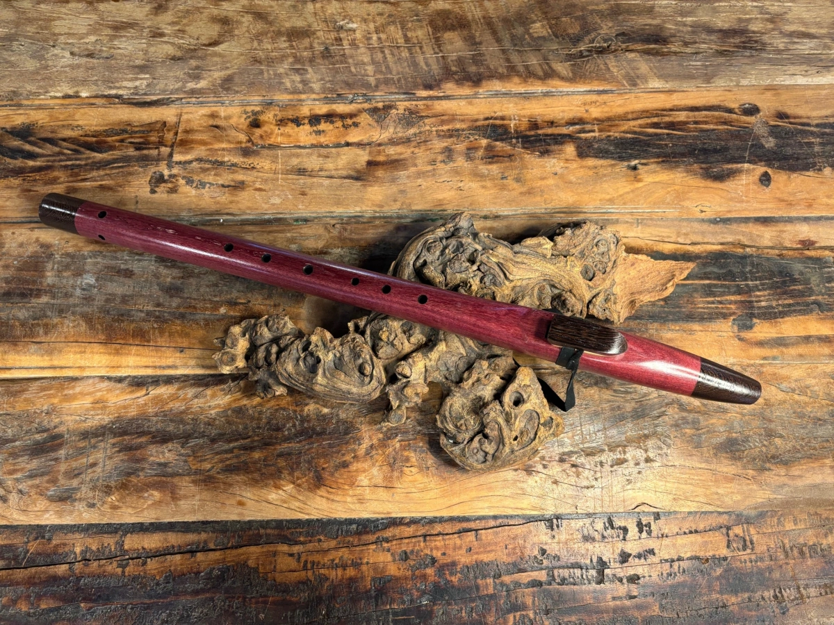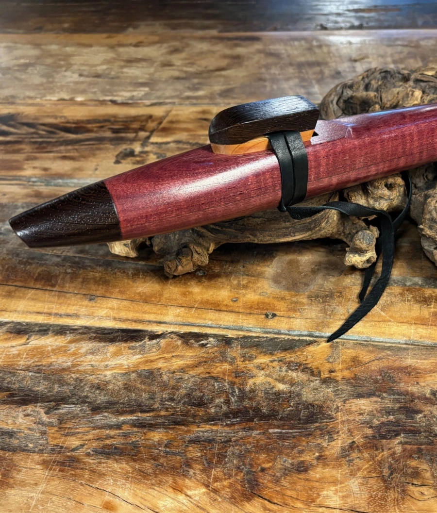 Traditionell mit einem Brennstab getunt, lädt sie das Element Feuer ein und schenkt jedem Ton die Energie der Inspiration. So entsteht ein Klangwesen, das Erde und Luft, Körper und Geist, Mensch und Natur miteinander verbindet. Die Kombination aus Purpleheart und Wenge macht die Flöte zu einem visuell wie klanglich faszinierenden Begleiter, der jedes Spiel zu einem persönlichen Erlebnis werden lässt.