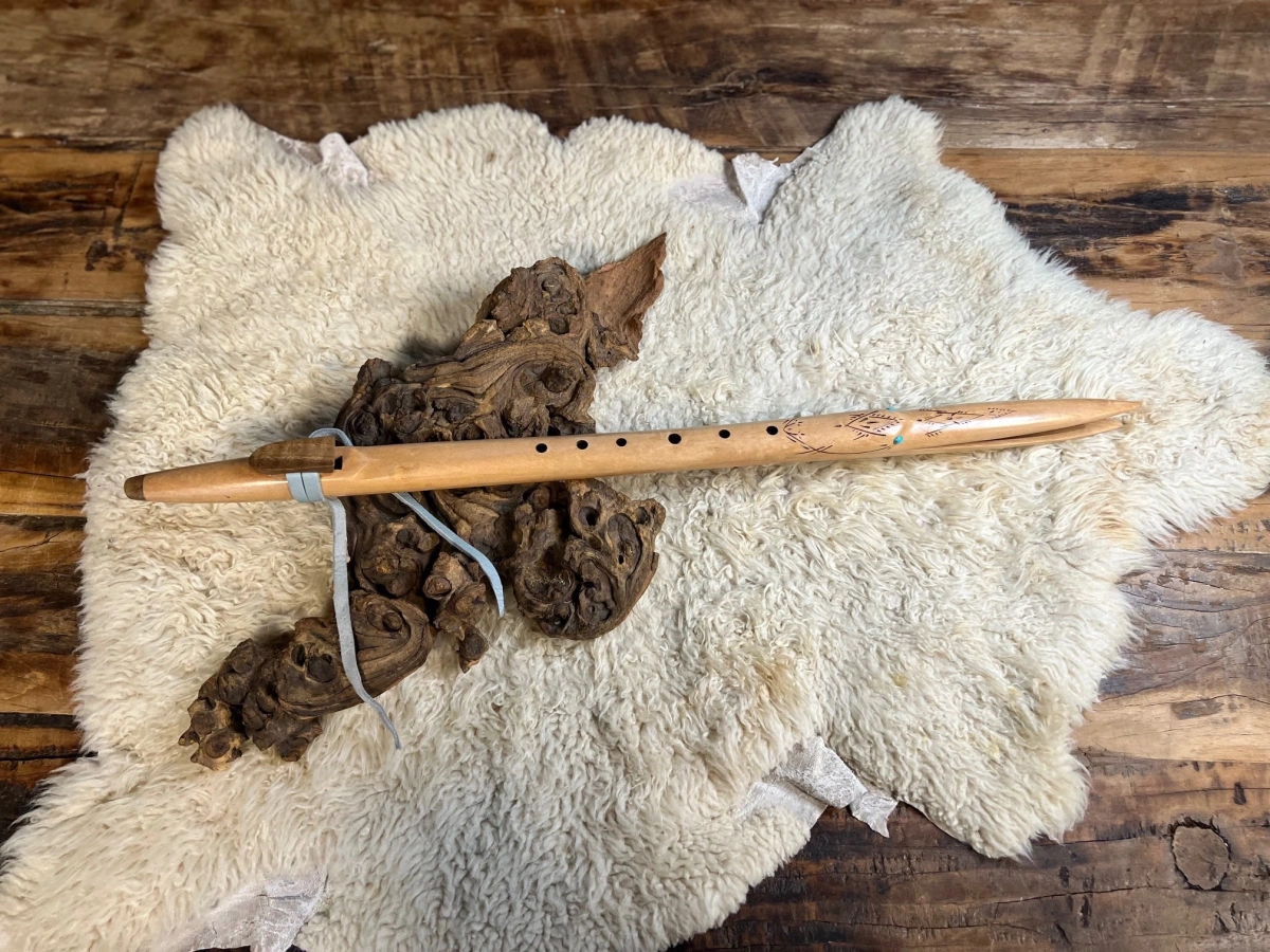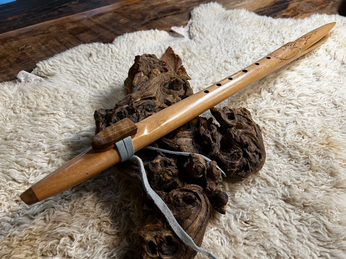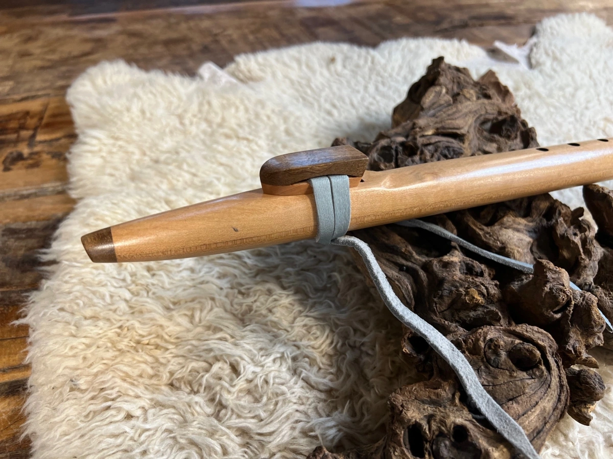 Traditionell mit einem Brennstab getunt, lädt die Flöte das Element Feuer ein und entfaltet die Energie der Inspiration, die jedem Ton innewohnt. So wird sie zu einem Klangwesen, das Erde und Luft, Körper und Geist, Mensch und Natur miteinander verbindet – jeder Ton ein Gebet, eine Brücke zwischen Himmel und Erde, Klang und Stille.