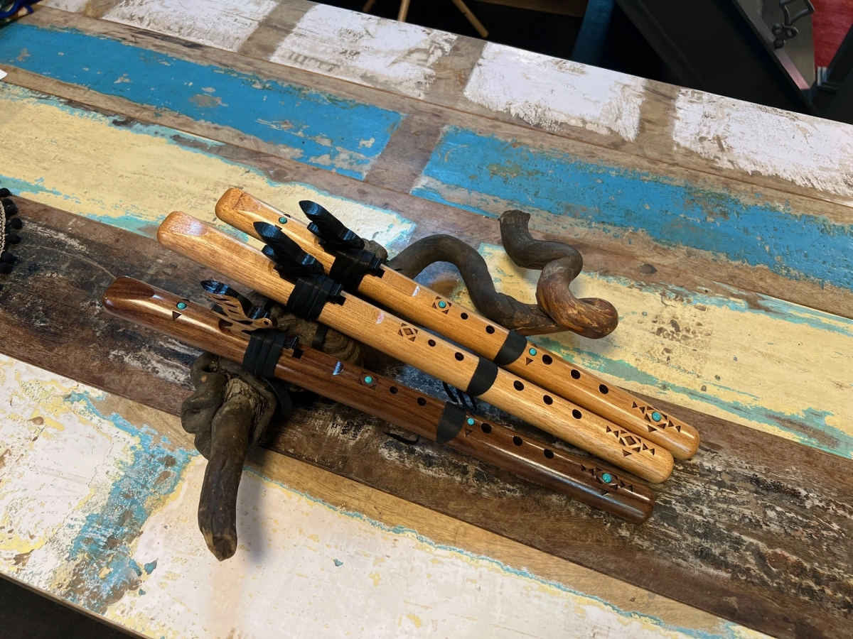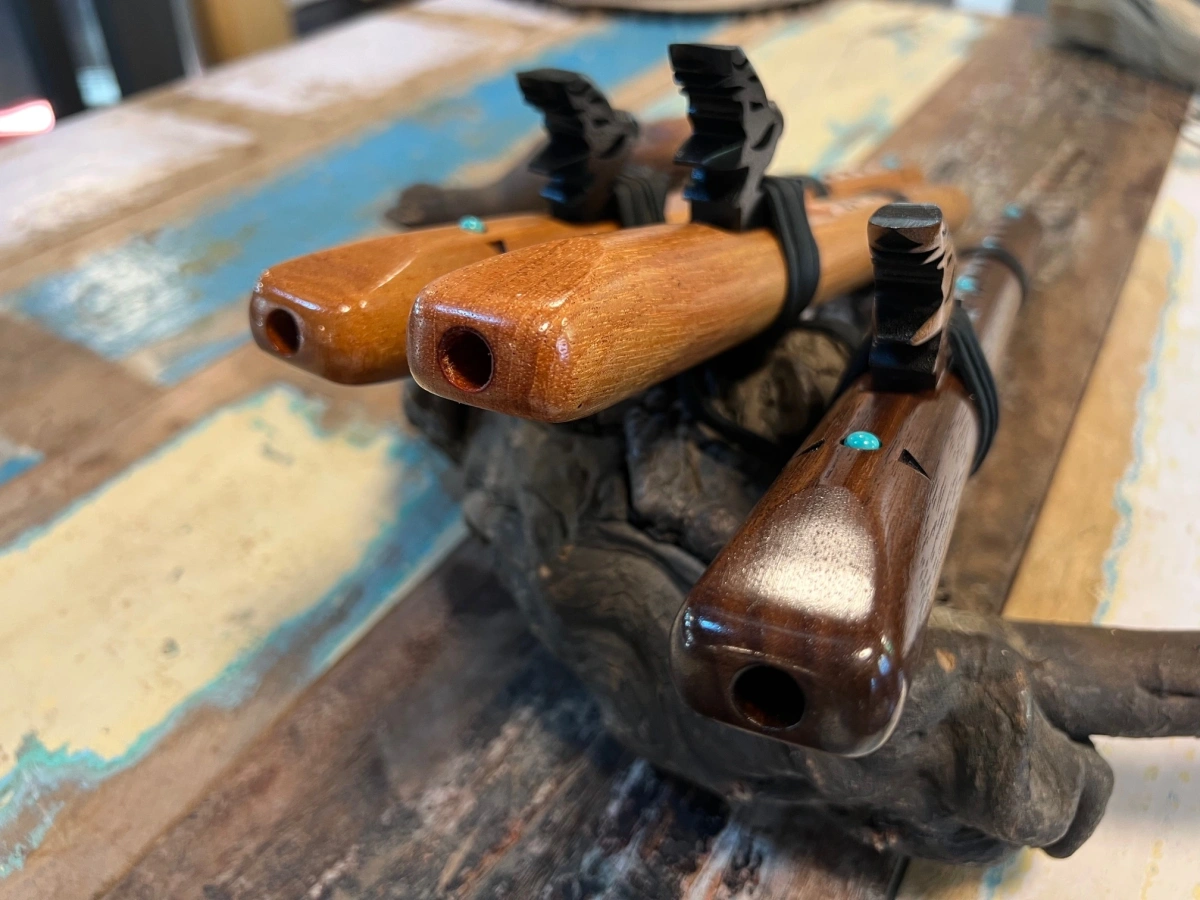 Seit 1990 bauen wir unsere Flöten in Patagonia, Arizona. Wir begleiten jede einzelne von der Holzauswahl über das Fräsen und Stimmen bis zum Finish mit Sorgfalt und Liebe zum Detail. Früher haben wir Flöten aus verleimten Hälften gefertigt. Heute entstehen sie aus einem einzigen Stück Holz – langlebiger und klanglich stabiler.