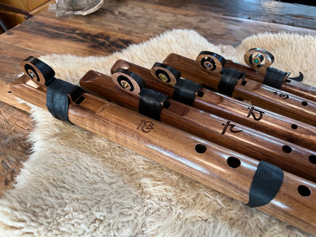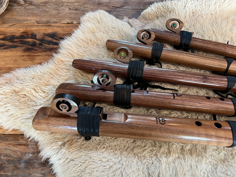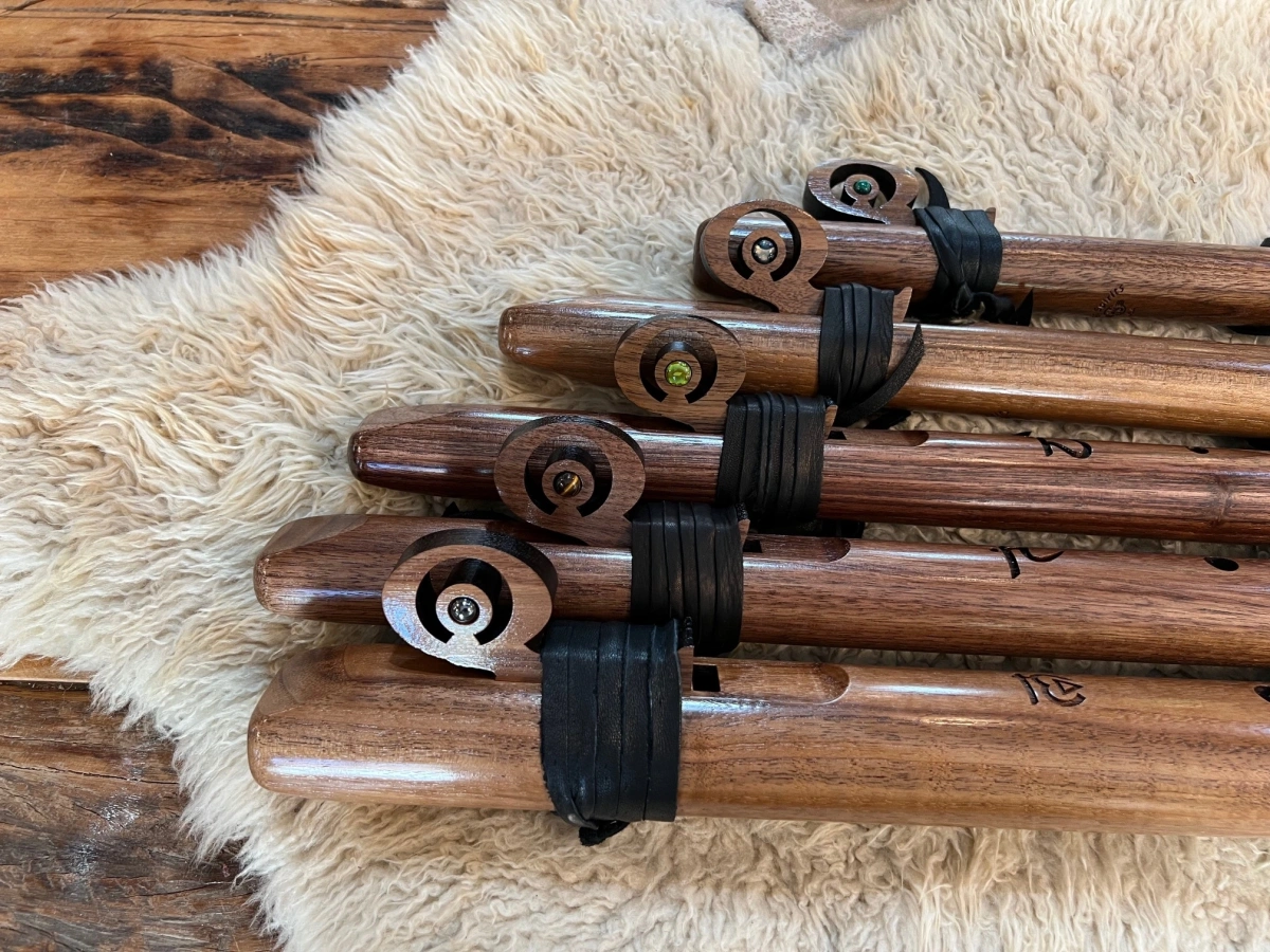 Ob Du mit den hellen Tönen Leichtigkeit in Deinen Raum bringst oder mit den tiefen Bassflöten eine meditative Atmosphäre erschaffst – jede dieser Walnussflöten trägt den warmen, klaren Klangcharakter in sich und lädt Dich ein, Deine eigene Klanggeschichte zu weben.