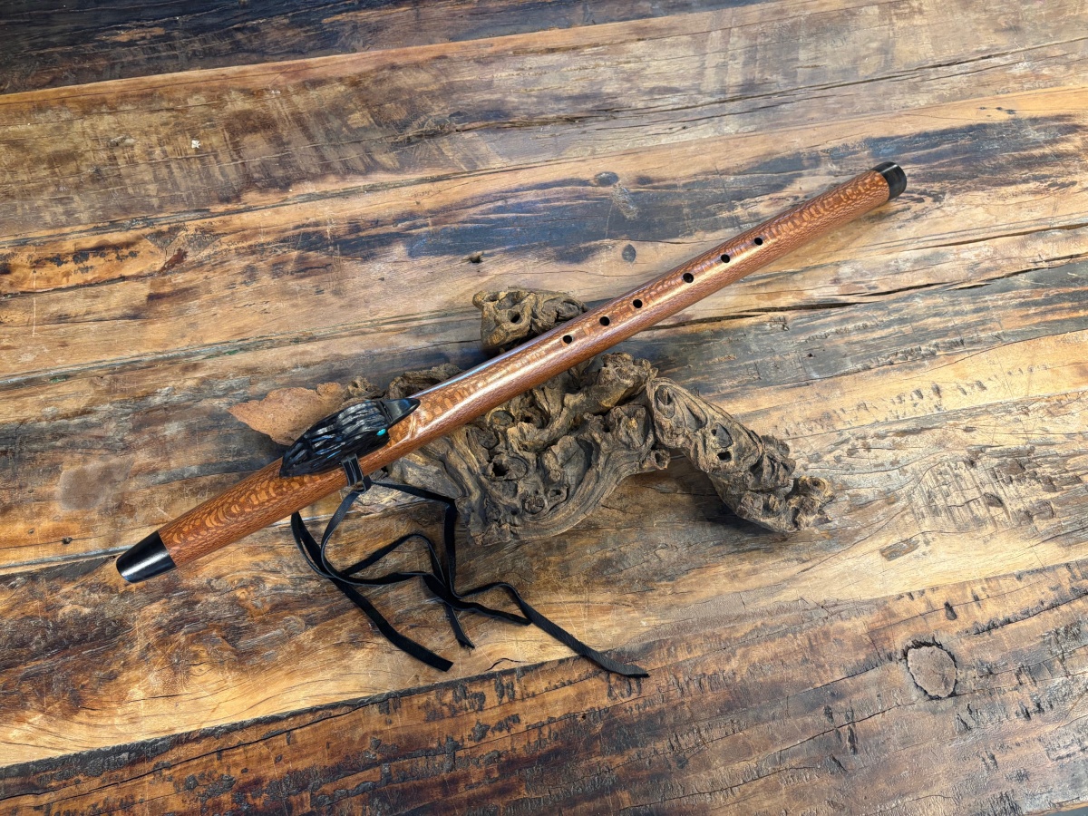 Die Flöte liegt angenehm in der Hand, spricht leicht an und entfaltet einen kraftvollen, lebendigen Bassklang. Ihr vollmundiger, zugleich feiner Ton macht sie ideal für Meditation, Rituale, Naturklang und freies, intuitives Spiel.