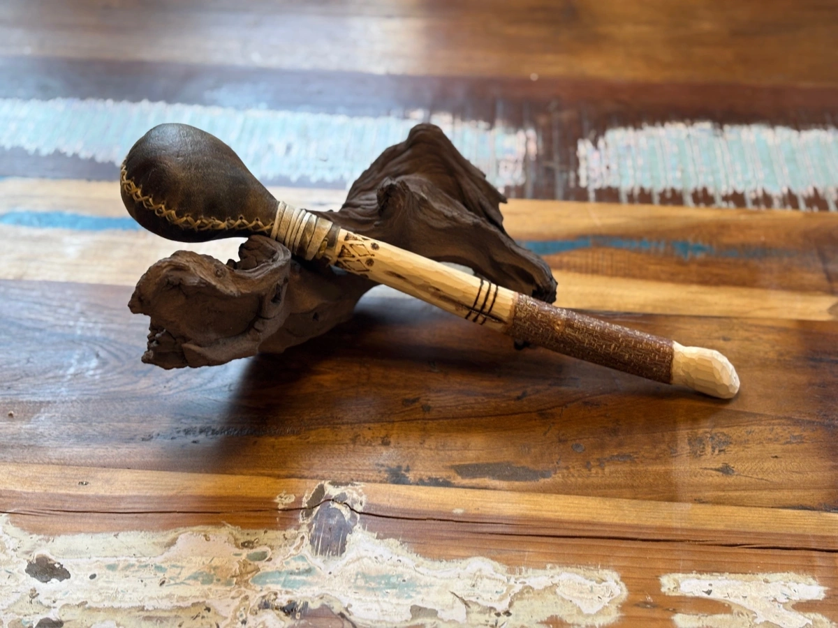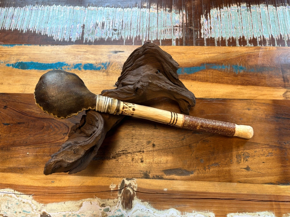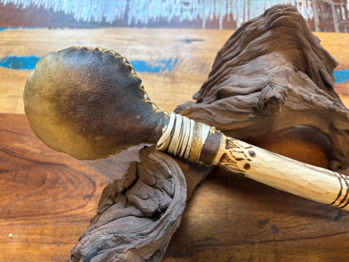 Im Klang dieser Rassel schwingt mehr als nur ein Geräusch: Sie begleitet Rituale, Meditationen und schamanische Reisen, öffnet Räume zwischen den Welten und lädt dazu ein, nach innen zu lauschen. Ihr Rhythmus erdet, klärt und verbindet – mit dem eigenen Herzschlag und dem Pulsschlag der Erde.