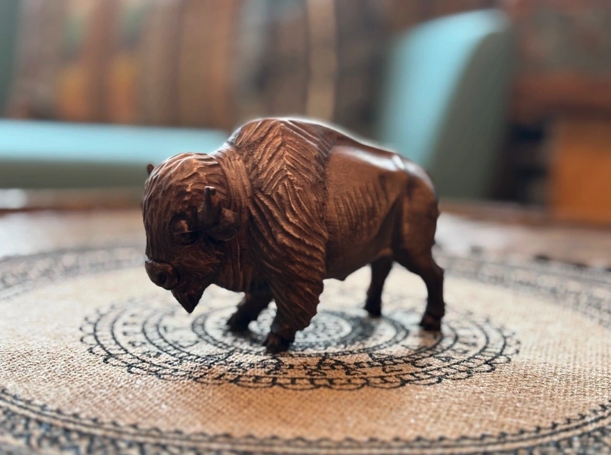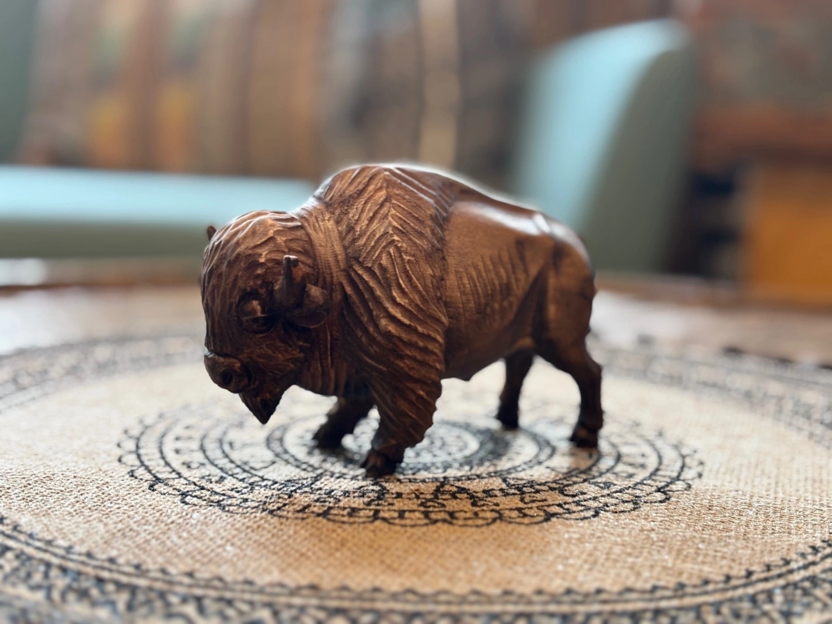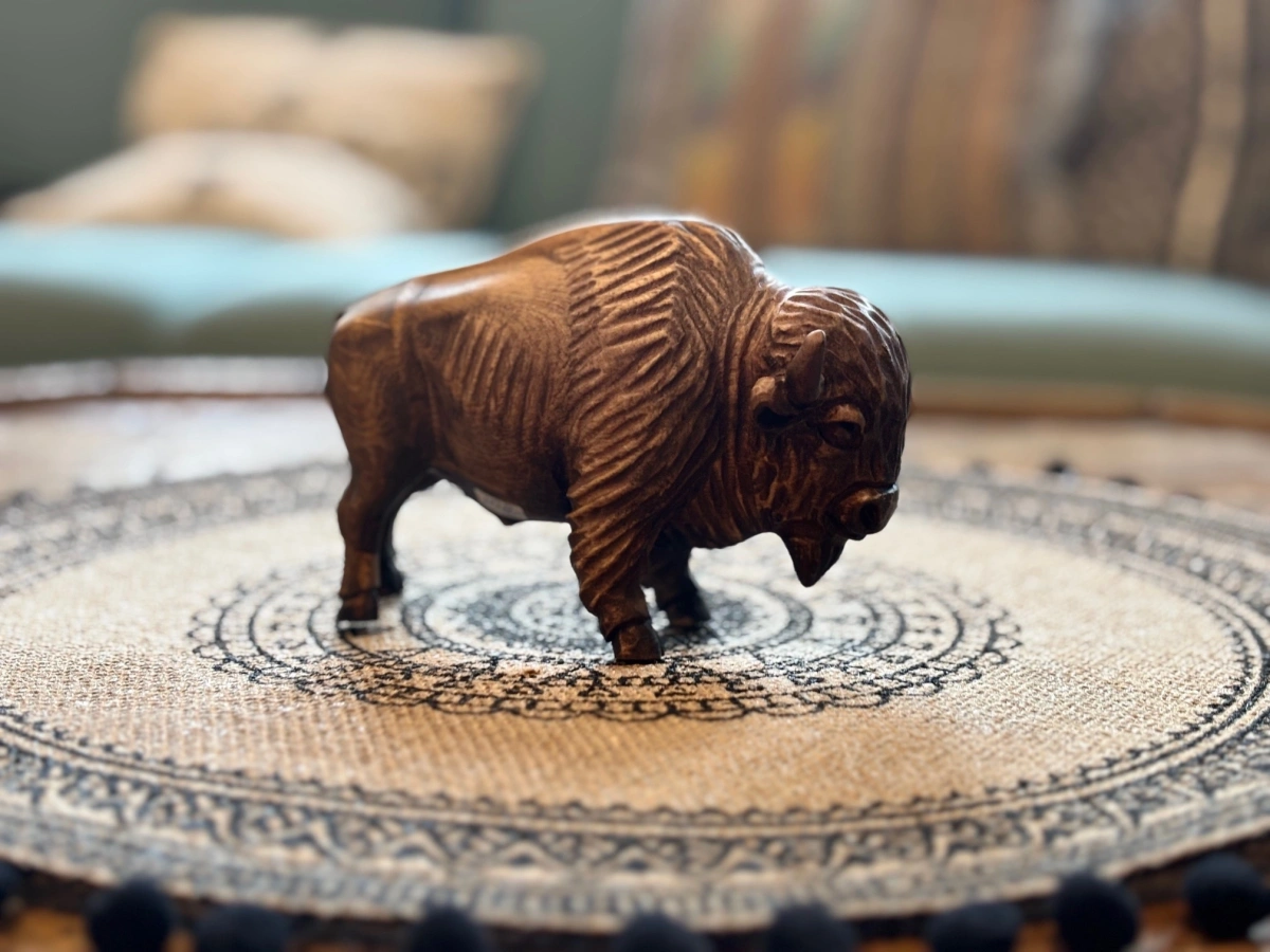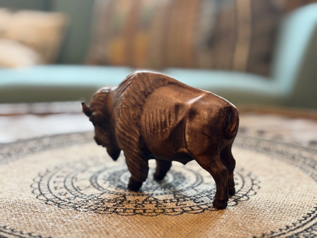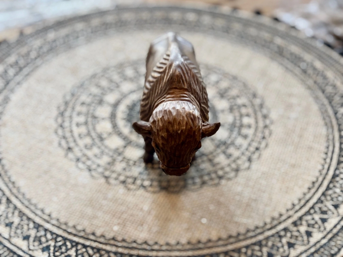 Krafttierfigur Bison – Handgeschnitzt aus massivem Vollholz, 14 cm