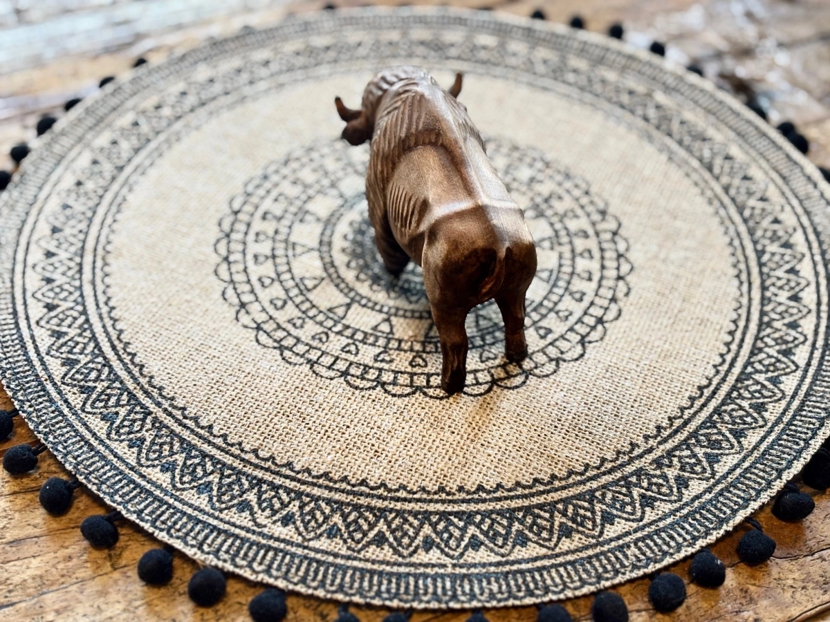 Handgeschnitzte Krafttierfigur Bison aus massivem Vollholz, 9 cm hoch und 14 cm lang. Mit viel Liebe gefertigt, strahlt er Ruhe, Erdung und Stärke aus. Im schamanischen Weg steht der Bison für Fülle und Ausdauer – ein kraftvoller Begleiter für Deinen Altar, Rituale oder als tägliche Erinnerung an innere Standhaftigkeit.
