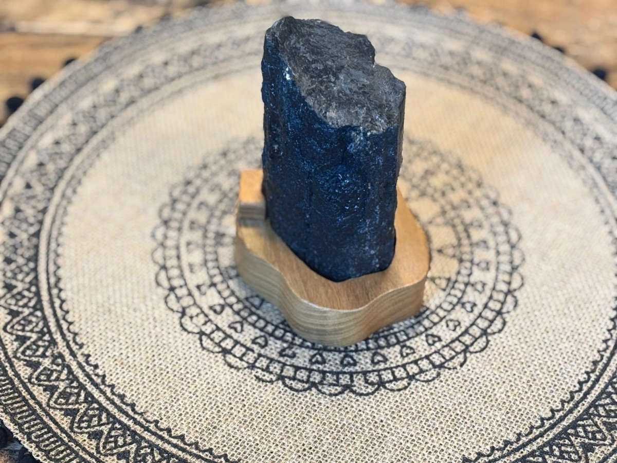 Auf dem warmen Holzsockel ruhend, wirkt dieses Stück wie ein Anker im Raum. Ob in Deiner Praxis, auf Deinem Altar oder in Deinem Zuhause – dieser Turmalin schafft einen Ort der Ruhe, der Zentrierung und des inneren Rückzugs. Er lädt Dich ein, loszulassen, Dich zu sammeln und in Deiner eigenen Kraft anzukommen.