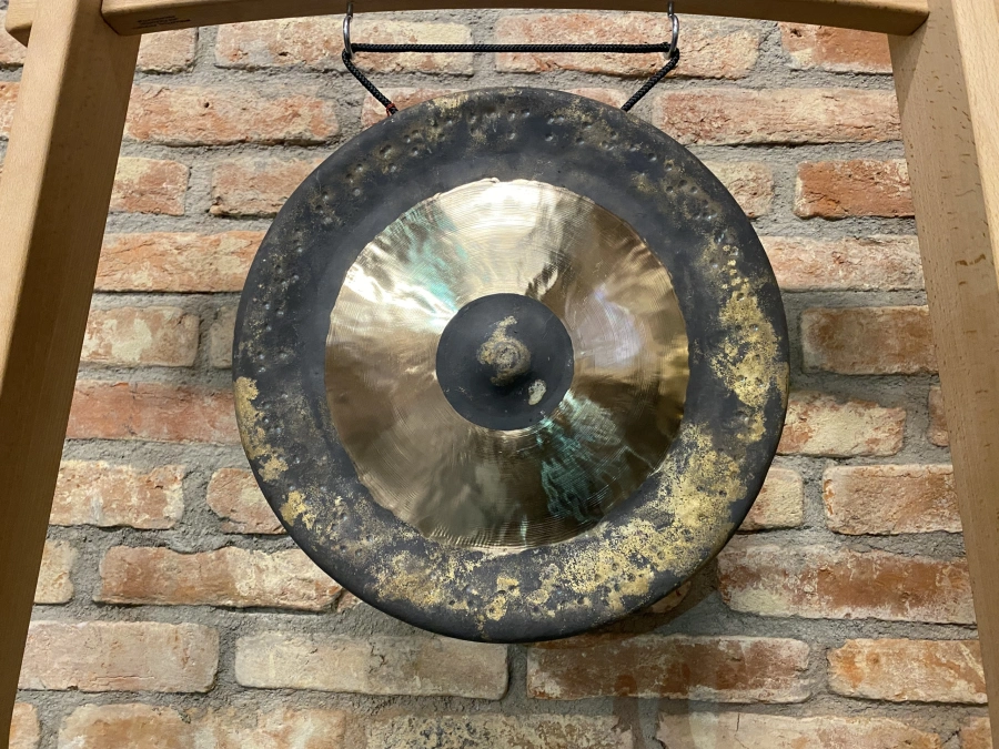 Der Chinesische Bao Gong erinnert an ähnliche Gongs in andere Südost-asiatischen Kulturen wie Thailand, Burma und Java. In diesen Ländern haben die Gongs in der Mitte einen Buckel oder Nippel. Auf diesem Teil des Gonges wird in der Regel auch angeschlagen so dass, je nach Durchmesser, einen satter, tiefer Ton erzeugt wird. Thomas besucht regelmässig Schweigeretreats in denen er, wenn immer möglich den Weckgong, Bao Gong am Morgen spielt. Durchmesser 40 cminkl. …