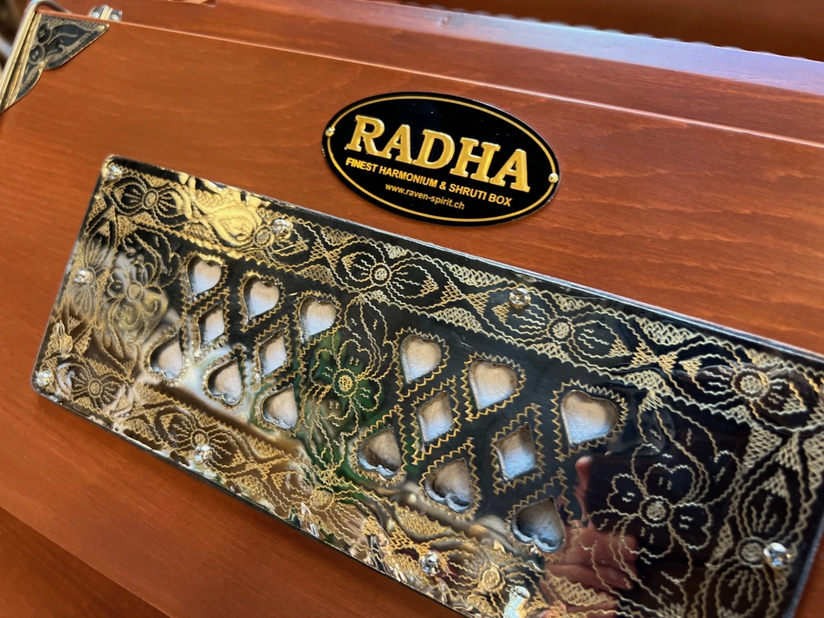 Der Name Radha bedeutet „die Verehrte“ – Sinnbild reiner Liebe und Hingabe. Auf Harmonium oder Shrutibox entfaltet er sich als Klang der Seele: atmend, sanft und verbindend.