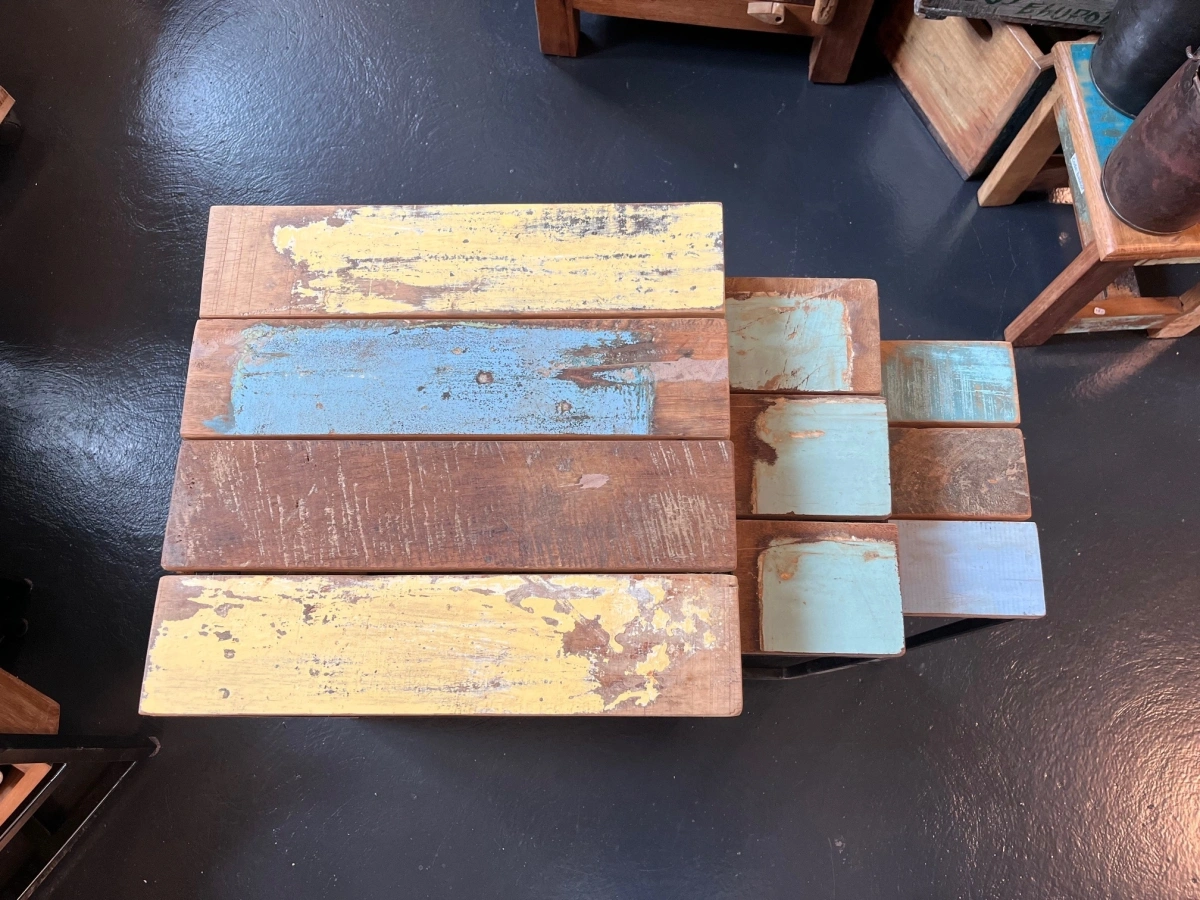 Trio-Tischlein aus Recyclingholz und Metall – Unikate im Set