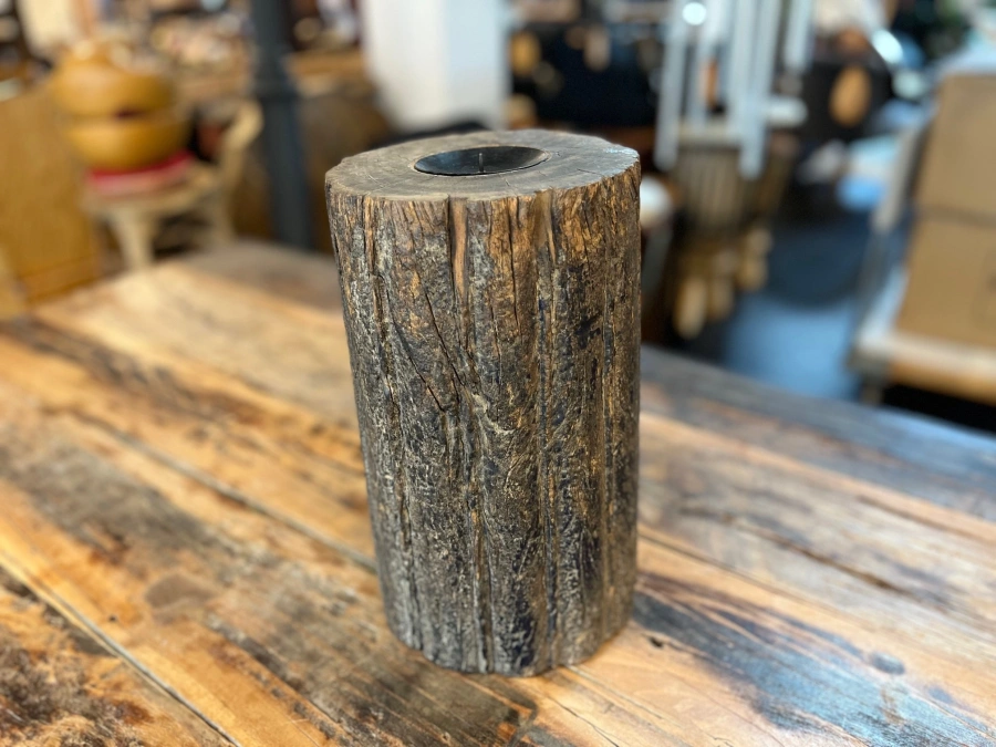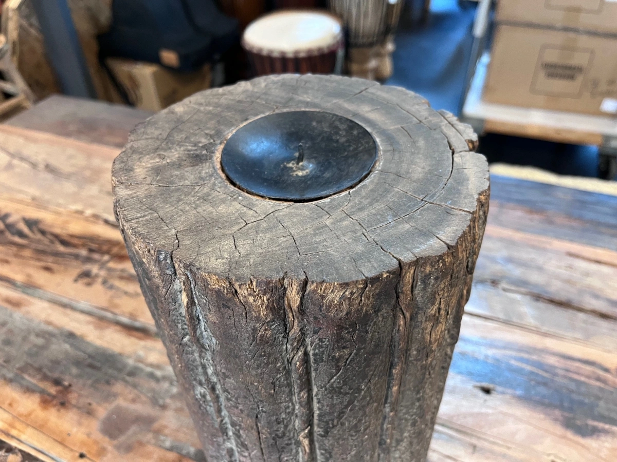 Dieser charaktervolle Kerzenständer wird aus einer massiven, alten Holzsäule gefertigt und bringt mit seiner eindrucksvollen Form ein Stück Geschichte in Dein Zuhause.