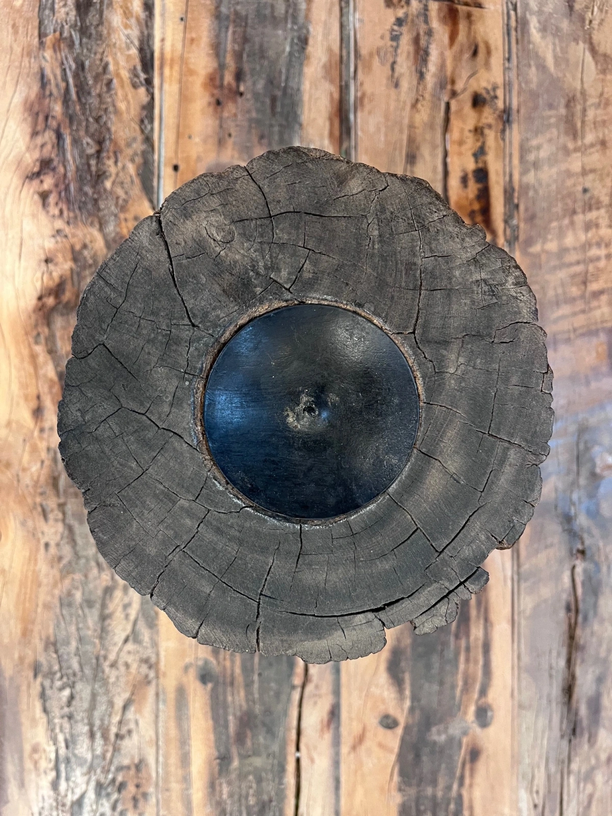 Dieser Kerzenständer aus massiver, alter Holzsäule bringt Wärme und Charakter in Dein Zuhause. Höhe 31 cm, Durchmesser 17,5 cm.