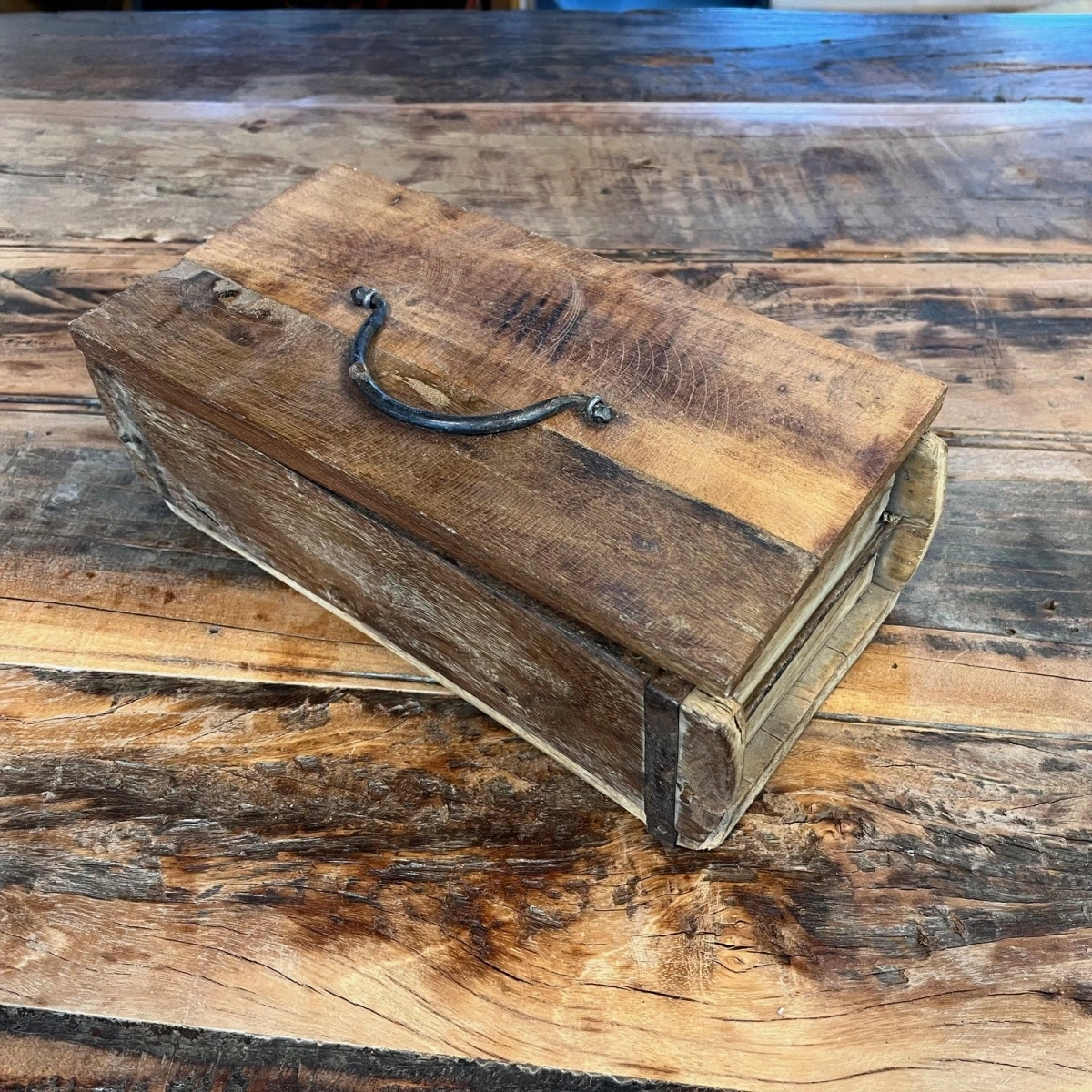 Box aus einer alten Ziegelsteinform (Brickmould). Mit zwei Henkelgriffen an den Seiten und einem losen, passenden Deckel.