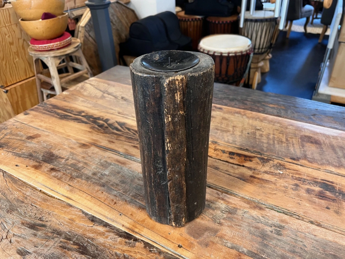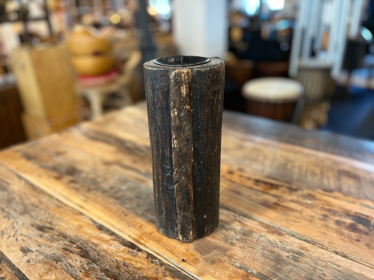 Dieser Kerzenständer aus massiver, alter Holzsäule bringt Wärme und Charakter in Dein Zuhause. Höhe 27 cm, Durchmesser 10 cm.