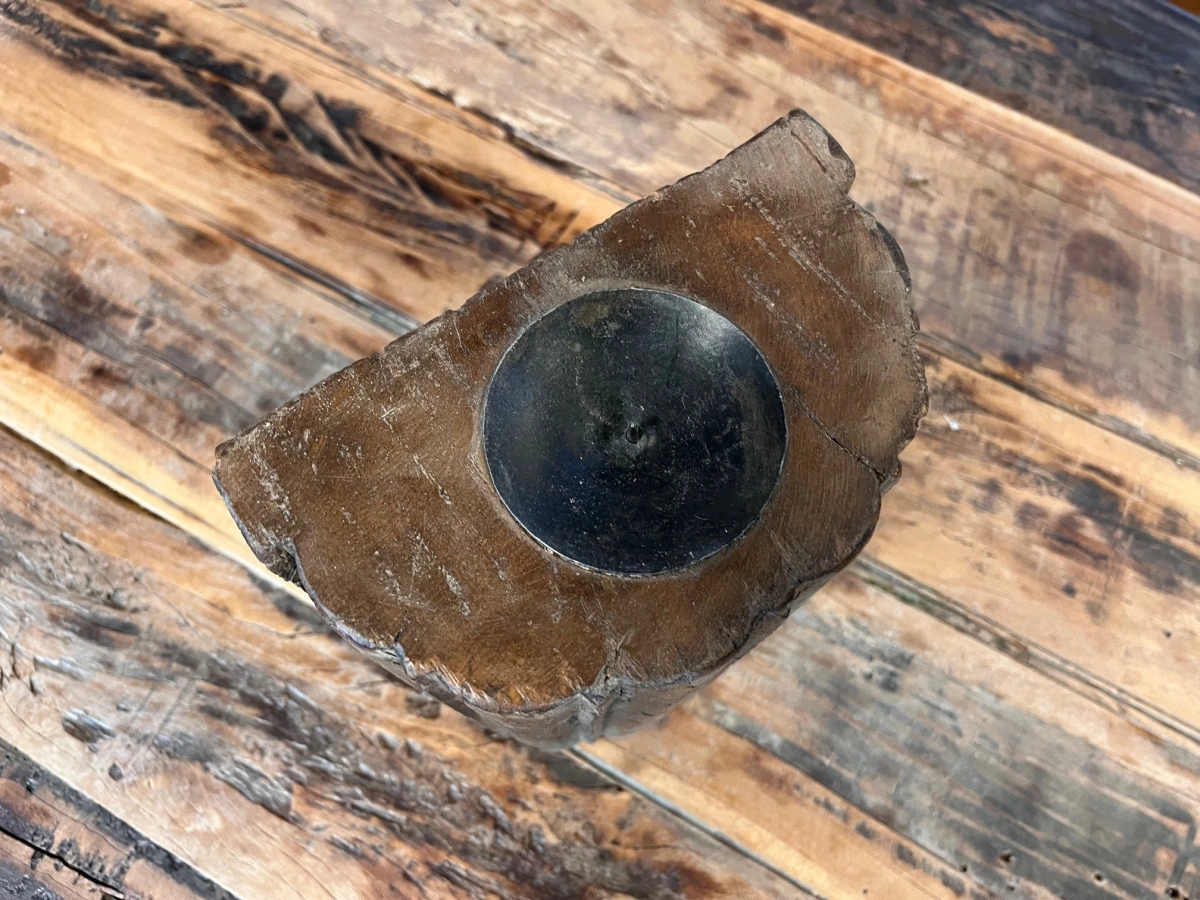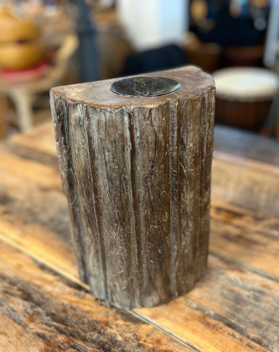 Kerzenständer aus alter Holzsäule |halbrund - 27 cm