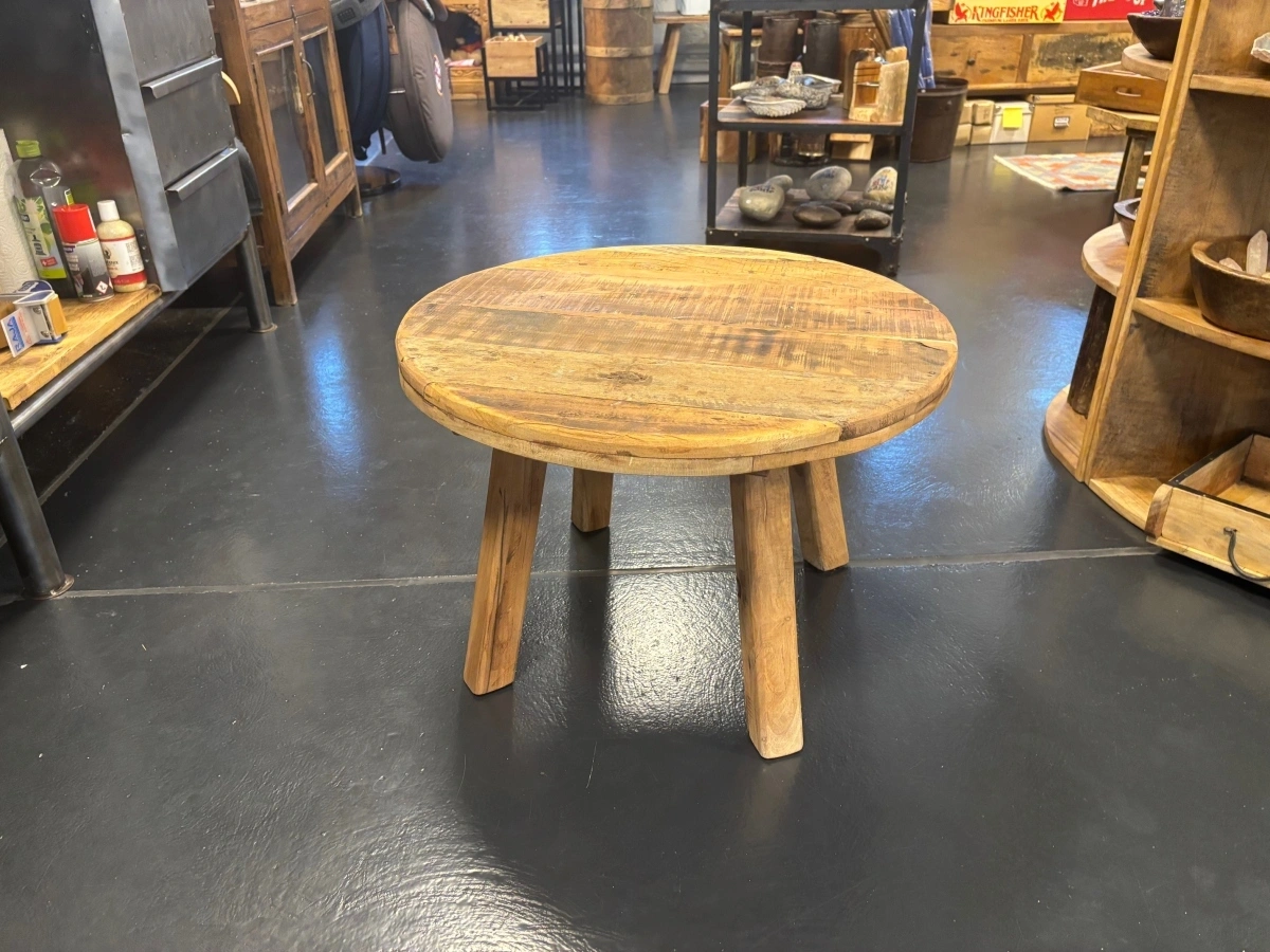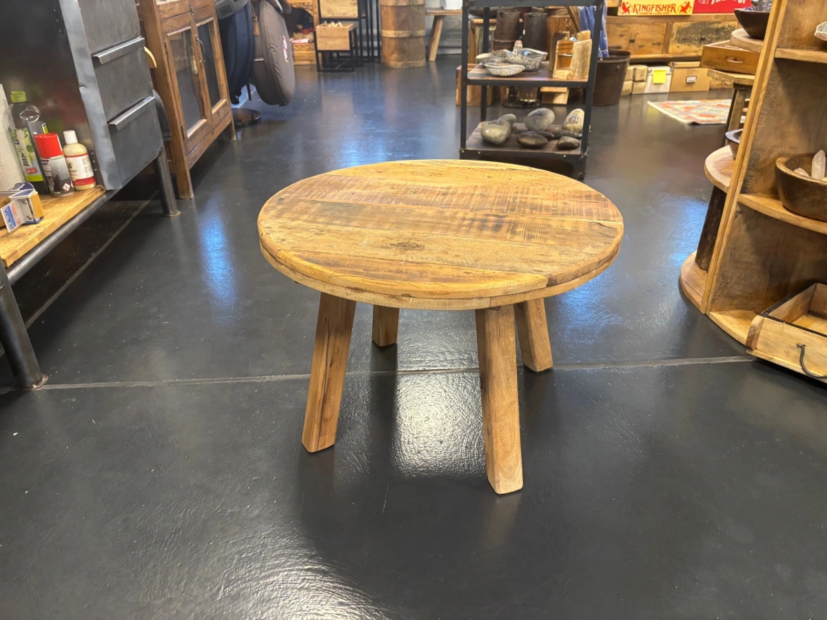 Runder Beistelltisch aus Recyclingholz