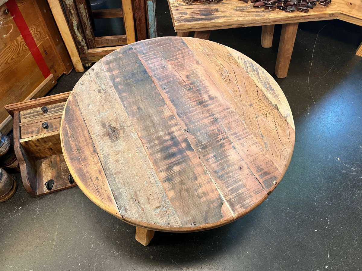 Runder Couchtisch – vielseitiges Unikat aus Recyclingholz