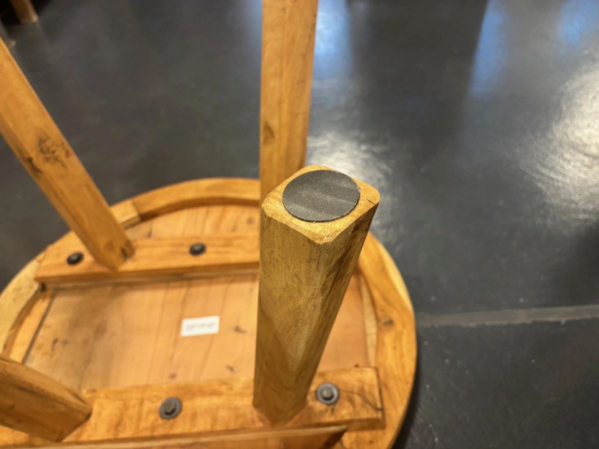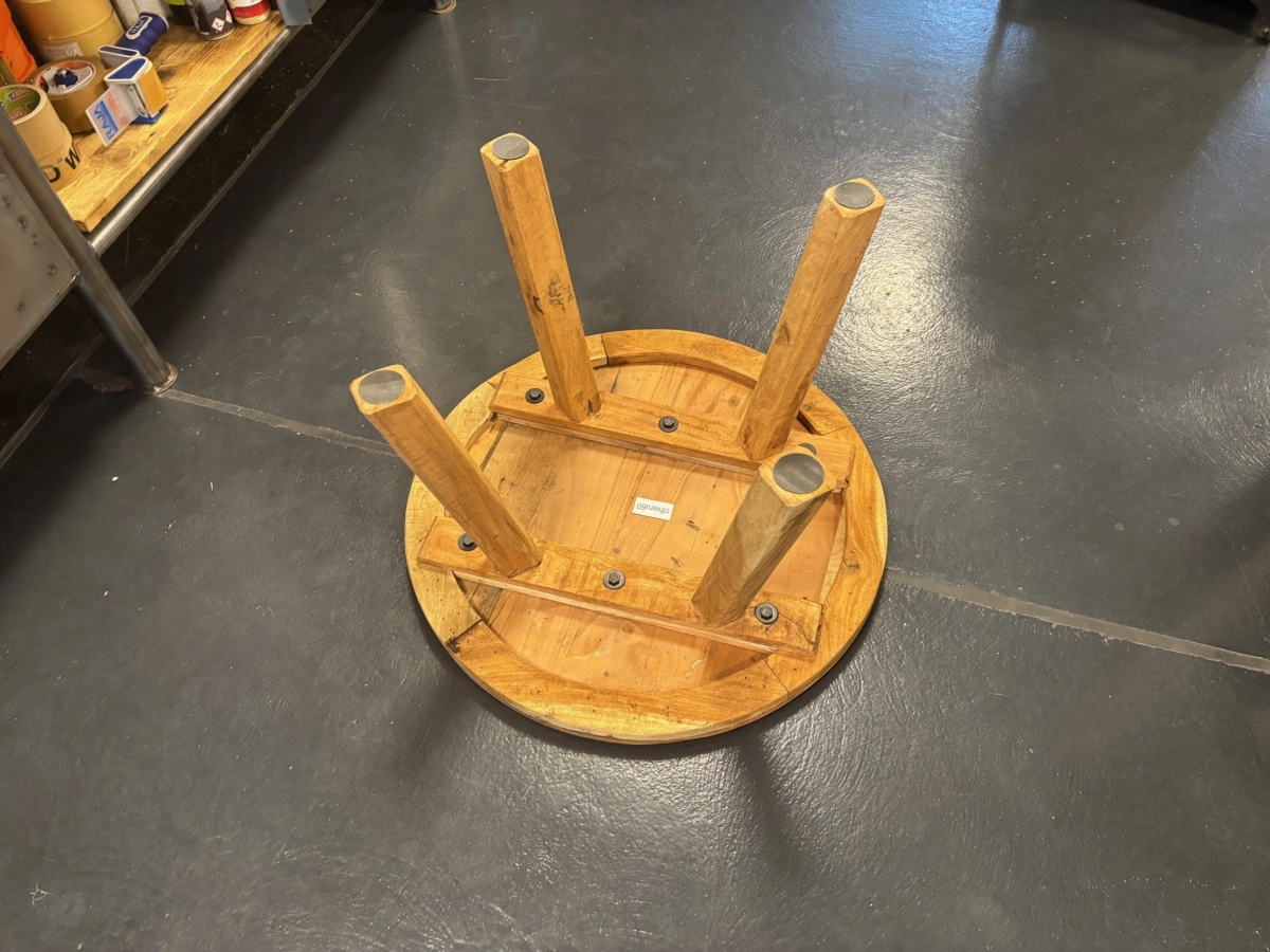 Dieser runde Couchtisch ist ein originelles, handgearbeitetes Möbelstück mit vielen Einsatzmöglichkeiten – ob als Tisch im Wohnzimmer, als Podest für Dekorationen oder als praktische Ablage. Mit seinem robusten Aufbau und der charmanten Holzoptik zieht er in jedem Raum die Blicke auf sich.