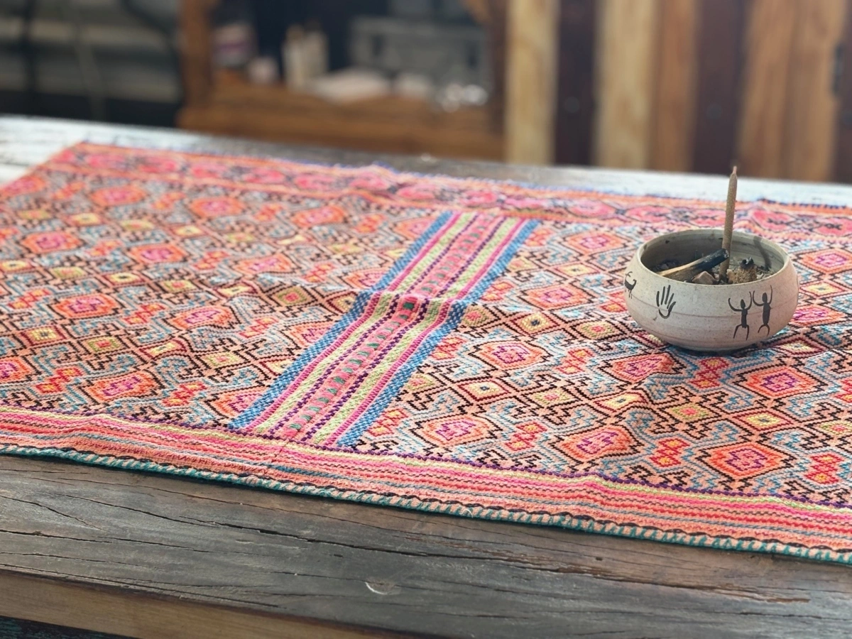 Dieses Shipibo Altar- oder Manta-Tuch ist mehr als ein Textil – es ist ein lebendiges Tor zur tiefen spirituellen Weisheit des Amazonas. Die leuchtenden Farbtöne, verbunden mit den heiligen Ikaros-Mustern, füllen Deinen Raum mit Energie, Inspiration und der alten Kraft der Shipibo-Kultur.